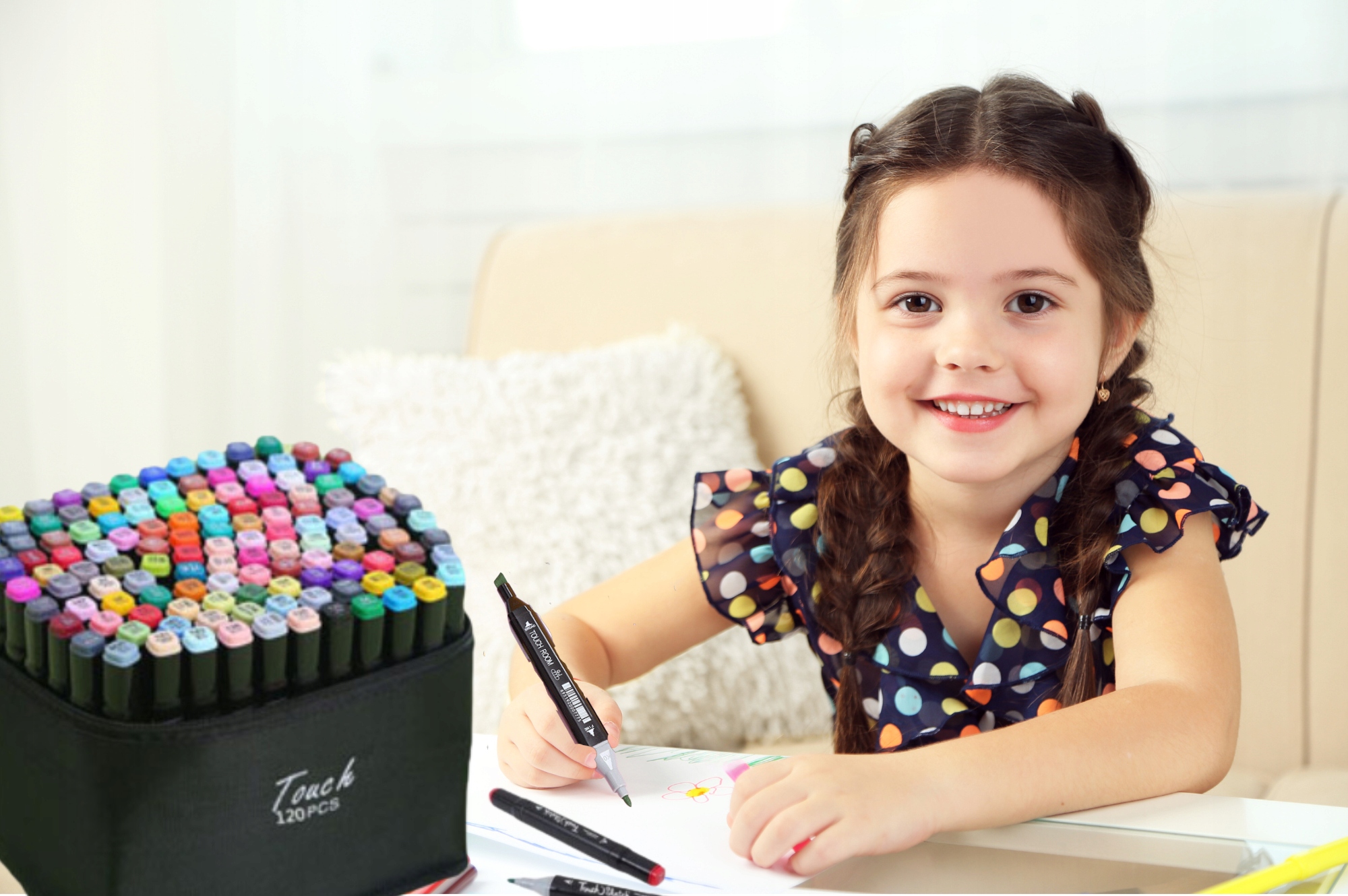 Набір з 120 штук маркерів, упакованих у зручний мішок для передачі, є ідеальним рішенням для тих, хто завжди перебуває на ходу! Завдяки цьому, ви не тільки візьмете свої улюблені маркери, де завгодно, але ви будете зберігати ідеальне замовлення, без зайвого безладу і шукаєте правильних кольорів.