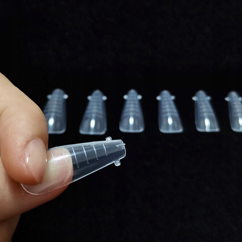 М'які та гнучкі форми для нарощування нігтів у формі балерини. Багаторазові зі спеціально профільованим вигином C. Вони ідеально зчіплюються з нігтьовою пластиною. Ви легко отримаєте улюблену форму нігтів. Важливо те, що завдяки цьому способу нарощування нігтів у всіх буде однакова форма, без трудомісткого моделювання.