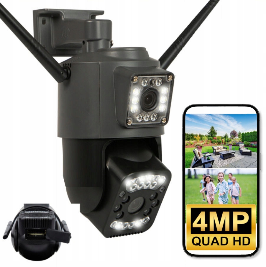 Подвійний 2in1 Камера ротаційний Wi -Fi IP 4MPX 2K Чорний моніторинг