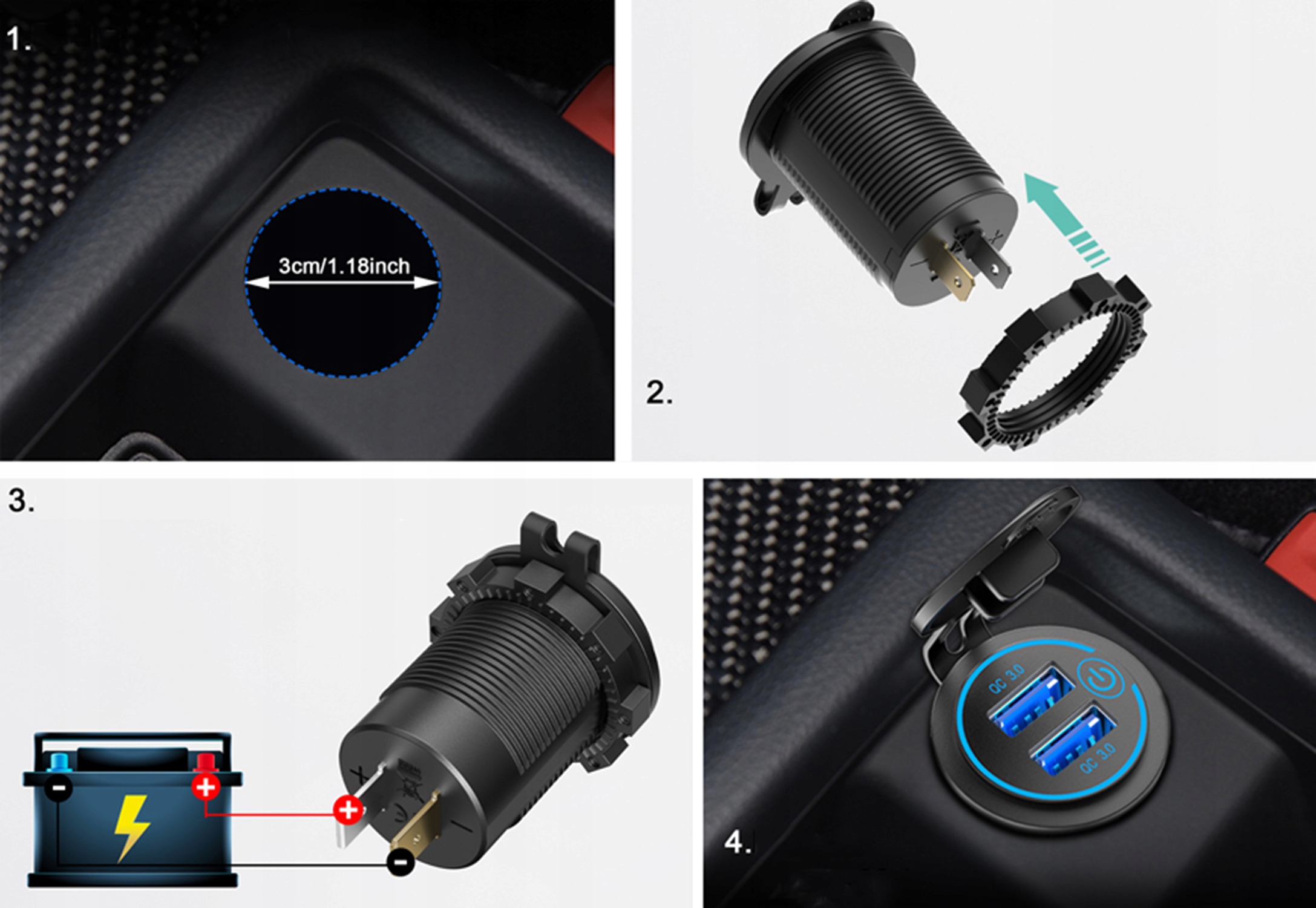 ⚡ 【Легка установка】 12 В USB -розетка легко встановити. Просто підключіть "+" до позитивного полюса, і "-" до негативного полюса.