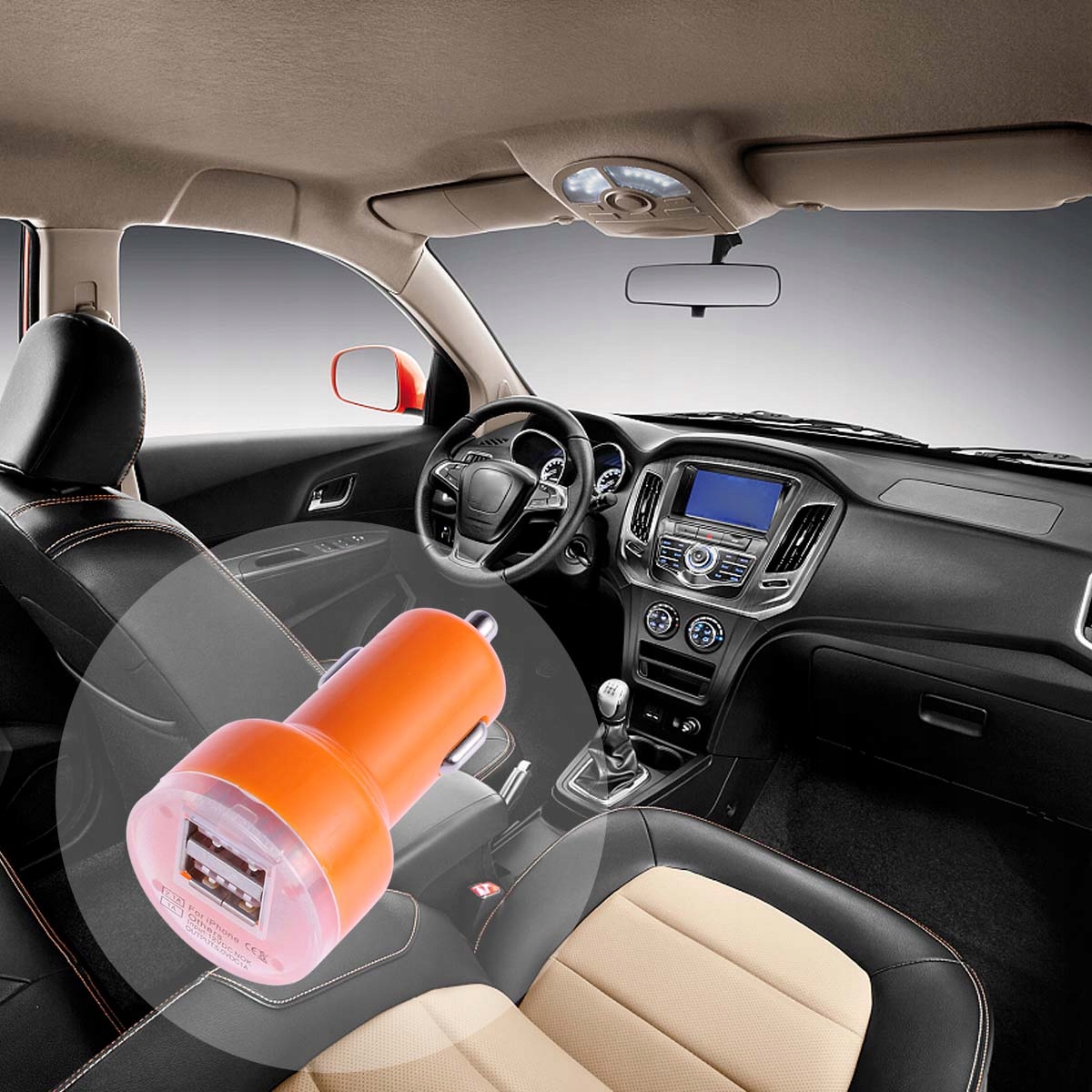 Подвійний автомобільний зарядний пристрій USB помаранчевого кольору з потужною автоматичною ідентифікацією на 21 А
