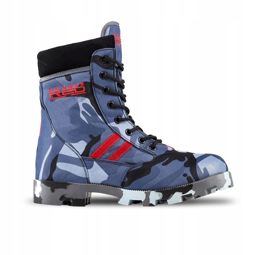 Сучасний візерунок камуфляжу з нової колекції моделей червоних джунглів у поєднанні синього камуфляжу з червоними деталями, створіть цілісне ціле. Взуття виготовлені з легких синтетичних волокон. Єдина, виготовлена з поліуретану найвищої якості, має властивості, що не є, є гнучким, що забезпечує високий комфорт під час руху. Модель підходить для року, що використовується, приходять, вона відрізняється використанням дуже тонких і легких матеріалів. Взуття пронизане, у них немає бічного замку. Взуття є легким, його дизайнерами, щоб забезпечити ідеальний комфорт, що залишився, підтверджуючи зміцнення п'яти та передньої частини. На верхній і стороні взуття є червоний подвійний вид.
