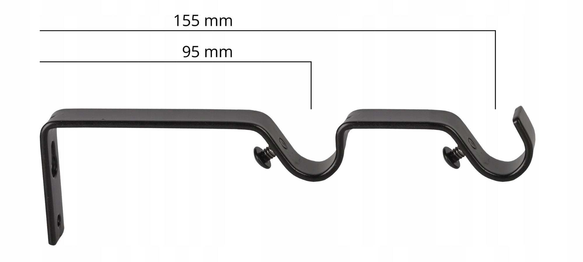 》 кронштейн, встановлений у 2 -ступінчастому системі для землі, забезпечує стабільне і дуже постійне кріплення до стіни. (Шпильки та гвинти завжди включені). Труба штор -стрижня заблокована ззаду гвинтом Allen. Кронштейн відстає трубу від стіни на відстані 15,5 див.