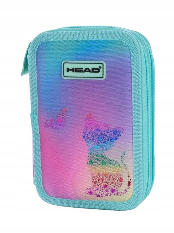 Пенал Head з двома відділеннями пастельних кольорів омбре - подарунок мрії кожної дівчини. Його передню частину прикрашає чарівне зображення кота, наповнене десятками маленьких зірочок. Пенал Head не має аксесуарів. Однак завдяки двом містким відділенням можна розмістити необхідні аксесуари, зокрема крейди, фломастери, олівці, ручки та лінійки.
