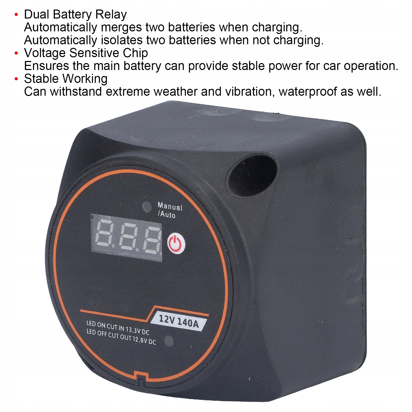 Розділене зарядне реле має червоний світлодіодний індикатор, який показує, чи потрібно розряджати первинну та стартерну батарею, а вторинну батарею можна заряджати окремо.