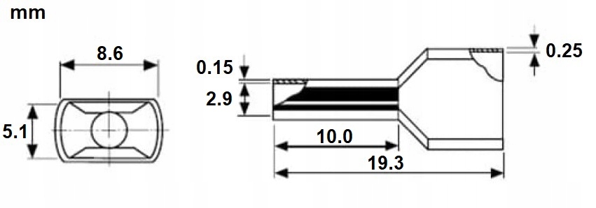 Розміри: 5.1 x 8.6 x 19.3 мм