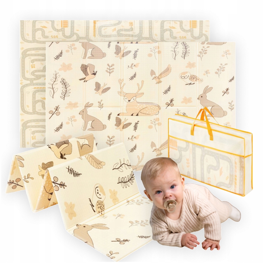 ✨ подвійний пінопластовий килимок для дітей 180x120 см -складений, товстий, безпечний | Мотив лісових друзів/осінніх вулиць