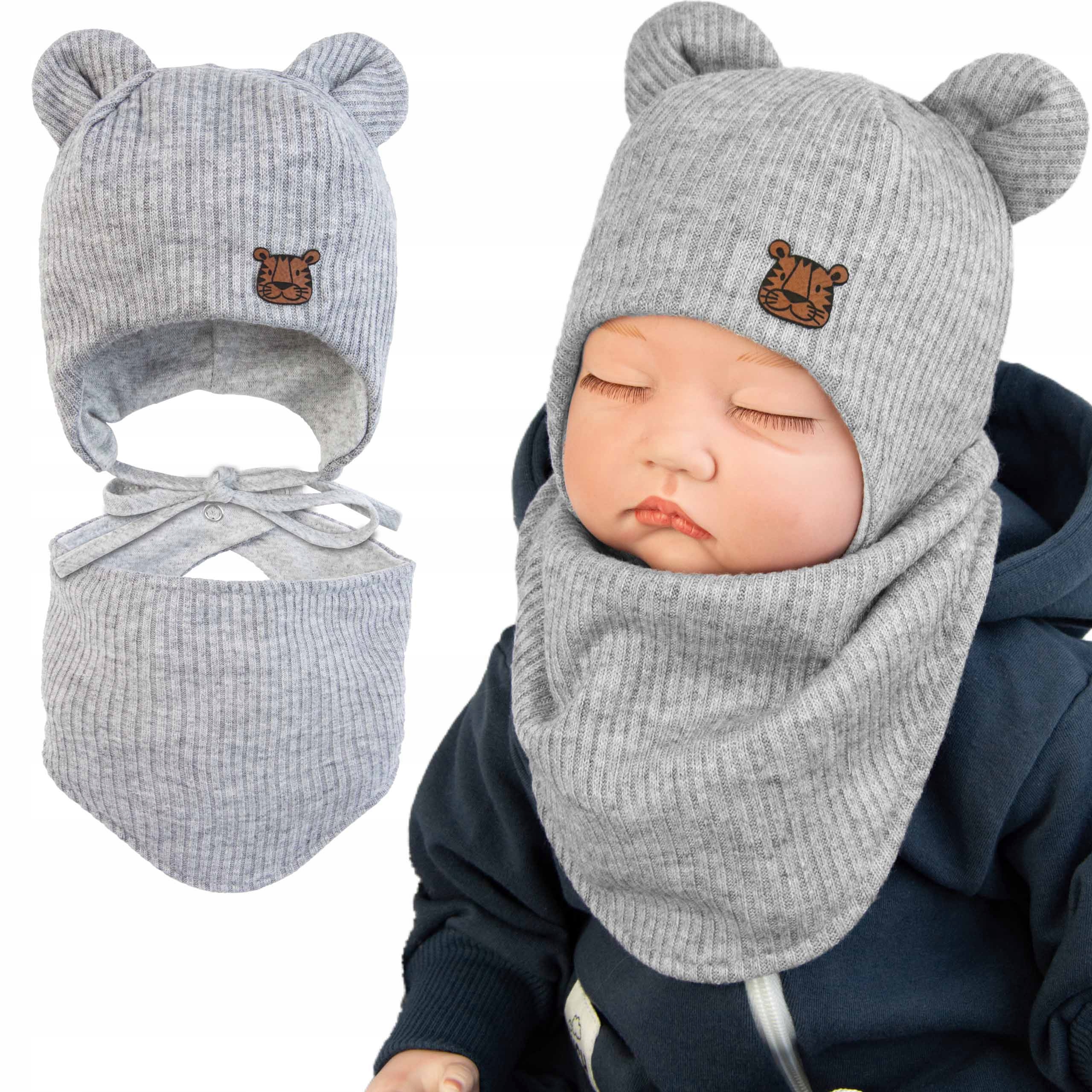 Комплект двошаровий, тому добре захистить голову, вушка та шию вашої дитини від холоду. Він м'який і чудово прилягає до голови. Залежно від ваших уподобань, ви можете зав’язати шапку або залишити мотузки вільними.