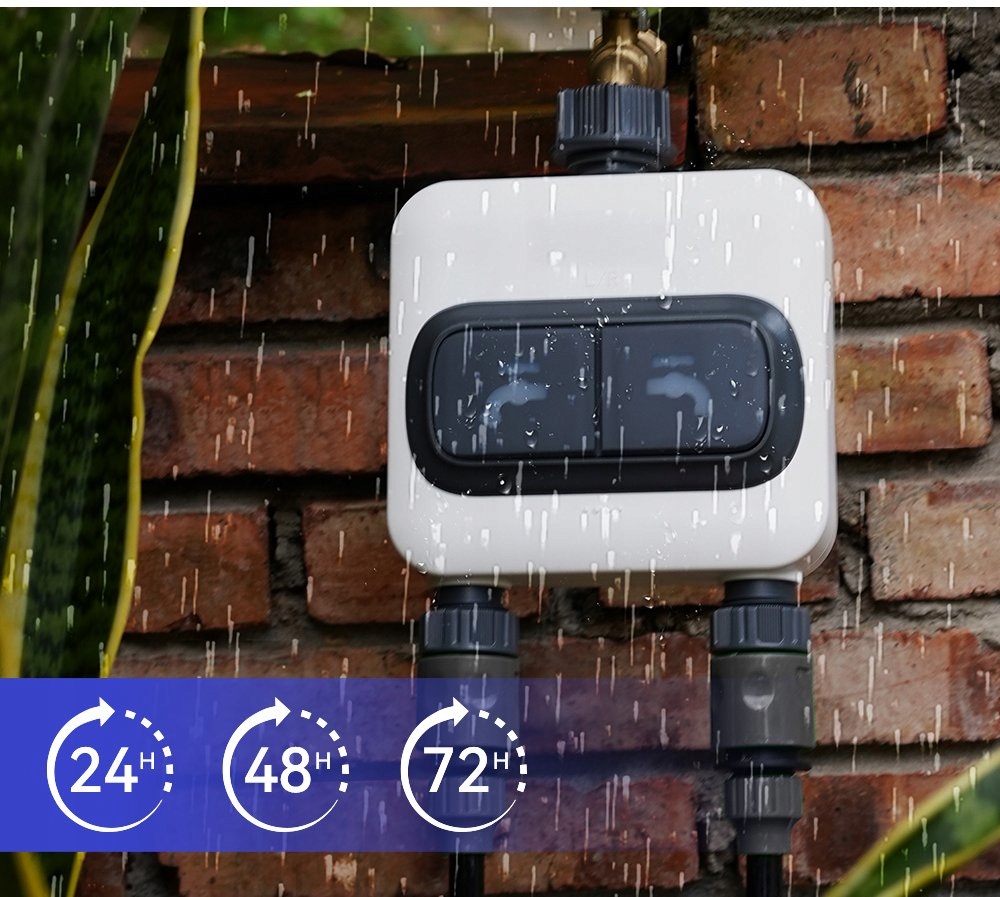 - Можливість встановити затримку зрошення до 24/48/72 годин завдяки вбудованому датчику дощу. Вимірювання споживання води: