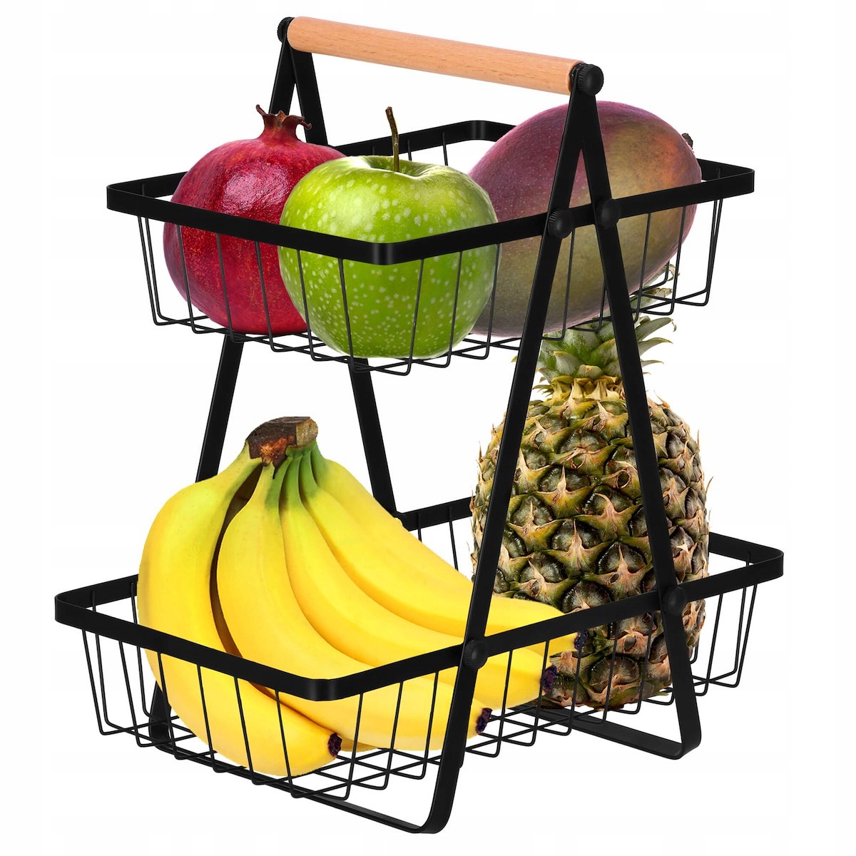 Металевий подвійний кошик для фруктів від Springos®виглядає чудово в матове покриття. У йогосередині можна помістити овочі та фрукти, а завдяки відкритим стінкам забезпечується циркуляція повітря, щоб вони швидко не псувалися.