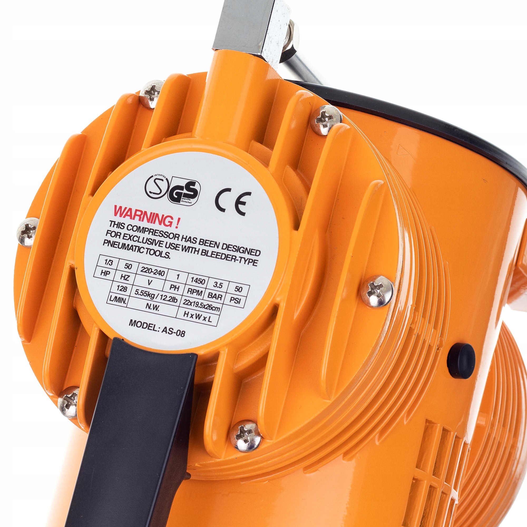 Міні-компресор з подвійною мембраною 128 л/хв AS-08Мембранний компресор для всіх аерографів і вибраних пістолетів для фарбування кузова (солярій) або міні-пістолетів для фарби продуктивністю менше 128 л/хв. Насос має сертифікати, серед іншого, на високу якість виготовлення: CE, GS, ROSH, ETL. Продуктивність за каталогом 128 л/хв.