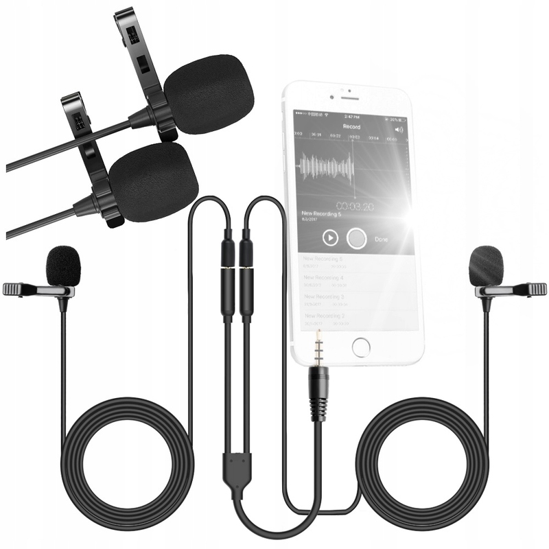 Подвійний мікрофон для телефону або планшета з кліпсою