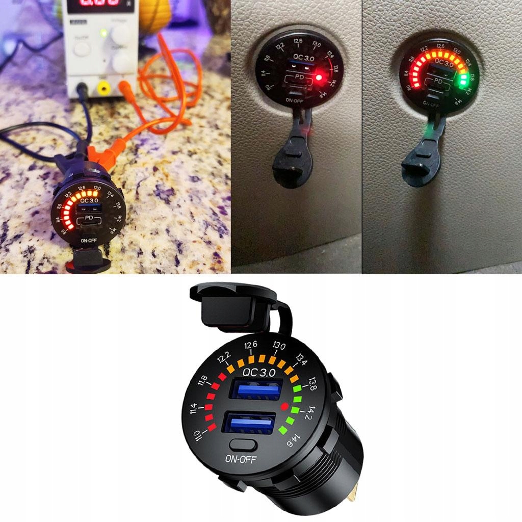 Improved voltage display: The USB socket is an improved version with a colorful voltmeter, fashionable appearance and displays the tension of the vehicle in real time easy to use in darkness