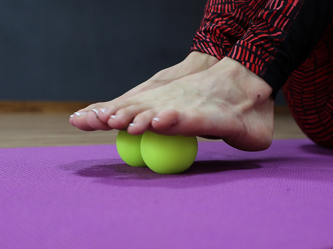 М’ячем потрібно натиснути на вибрані точки на тілі підлогою , стіна або будь-яка інша тверда поверхня для стабілізації руху. Масажний м’яч – це виріб, який допомагає усунути незначний м’язовий біль шляхом натискання на певні частини тіла.
