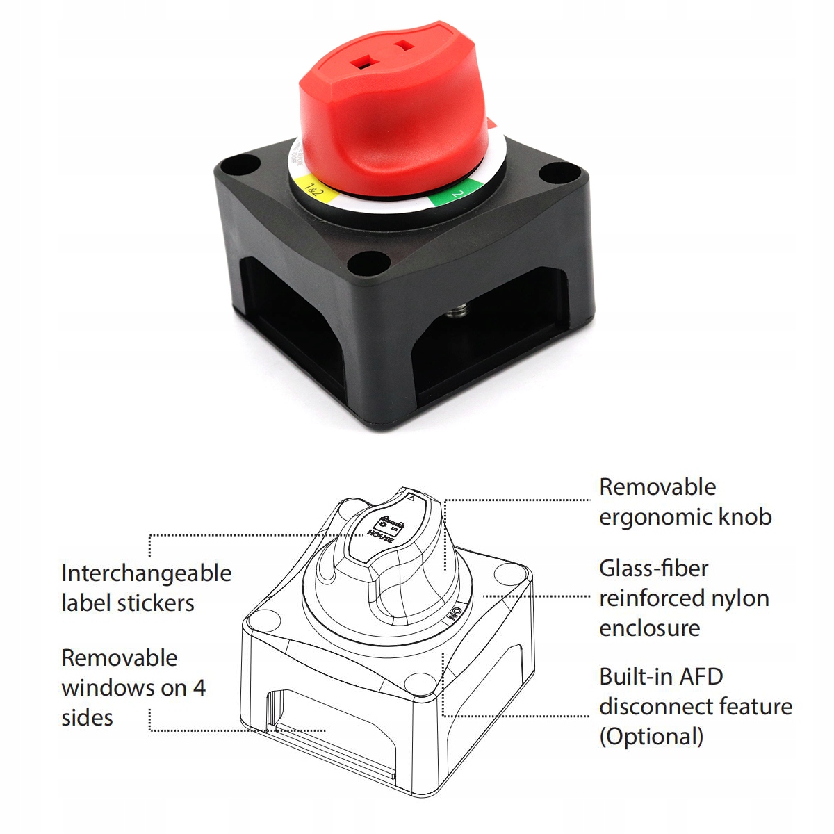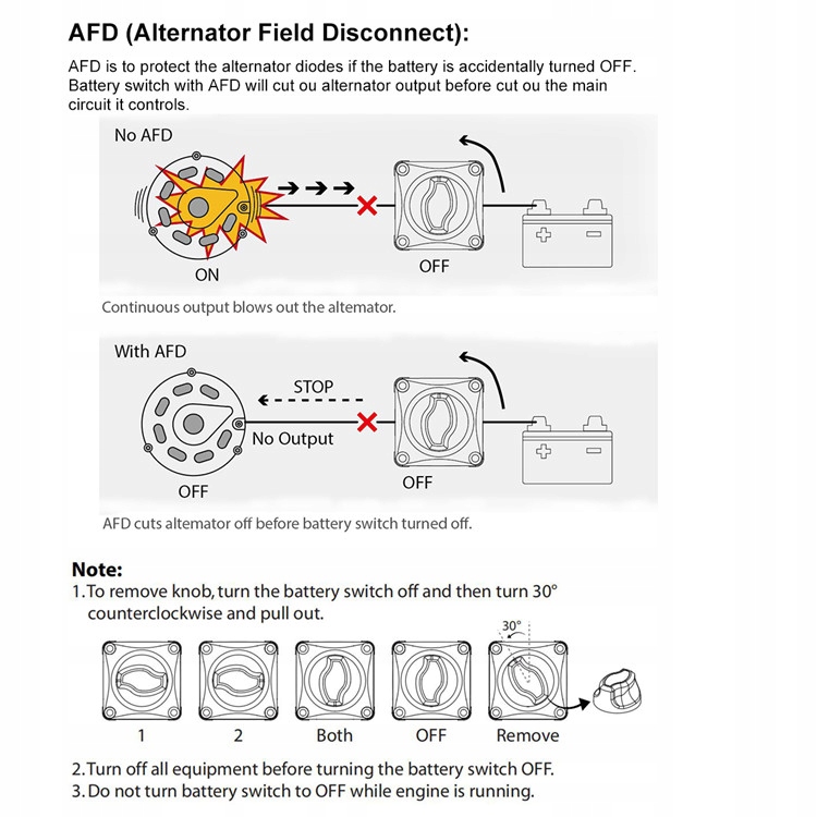 - Найменший вимикач батареї з AFD (відключення поля генератора) на ринку