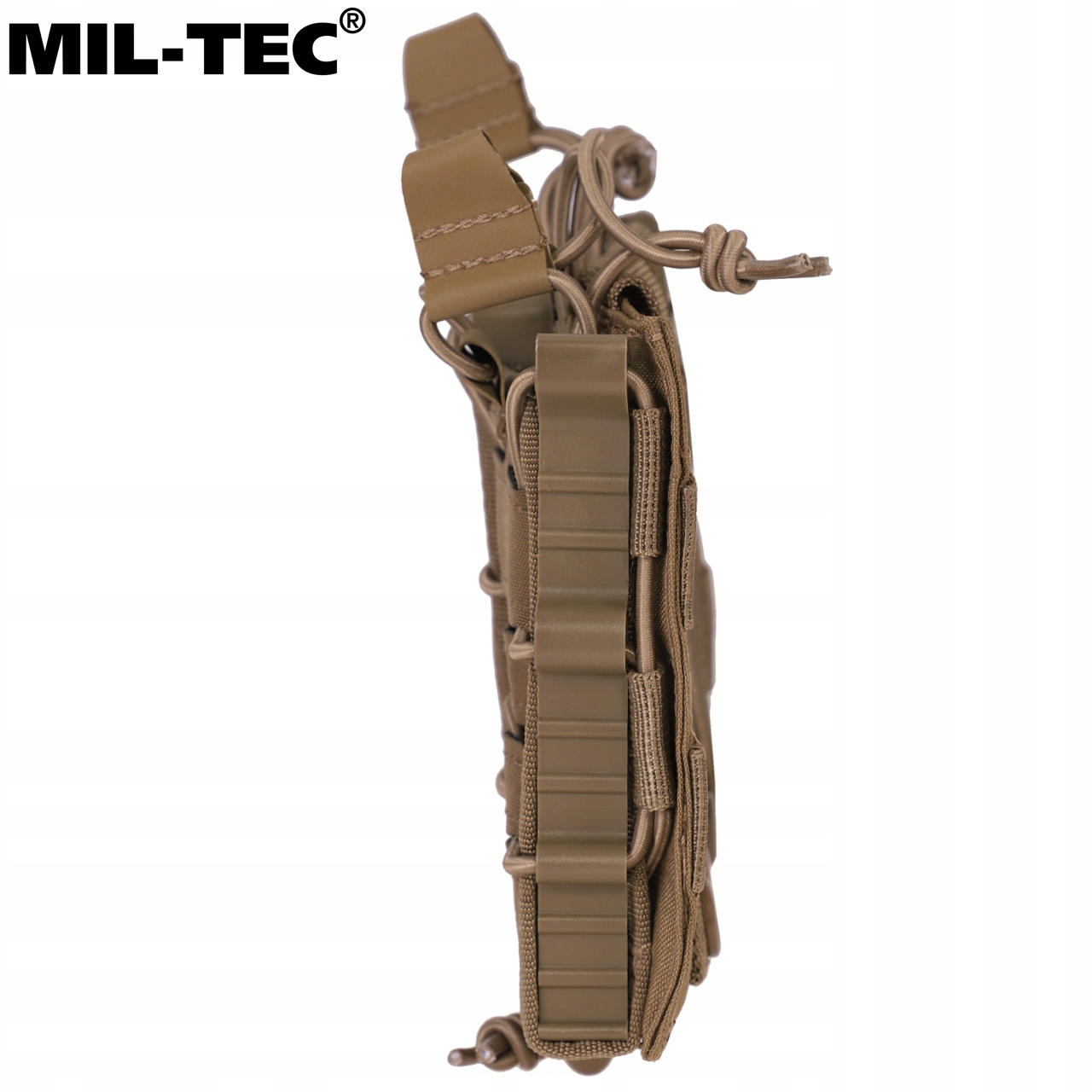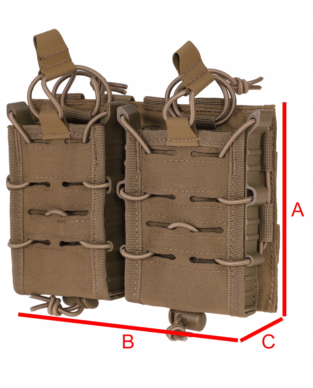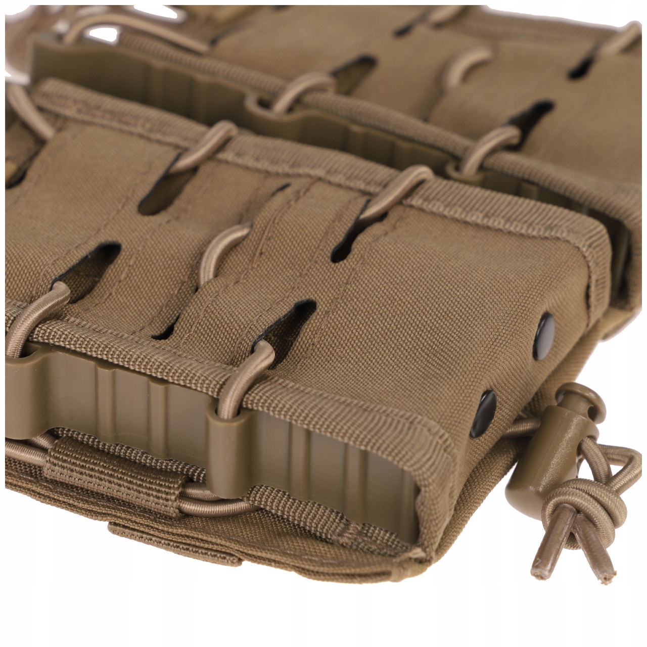 Виготовлений із стійкого до стирання та вологи поліестеру з покриттям ПВХ. Його відкрита конструкція дозволяє швидко замінювати магазин. Призначений для носіння магазинів для гвинтівок.