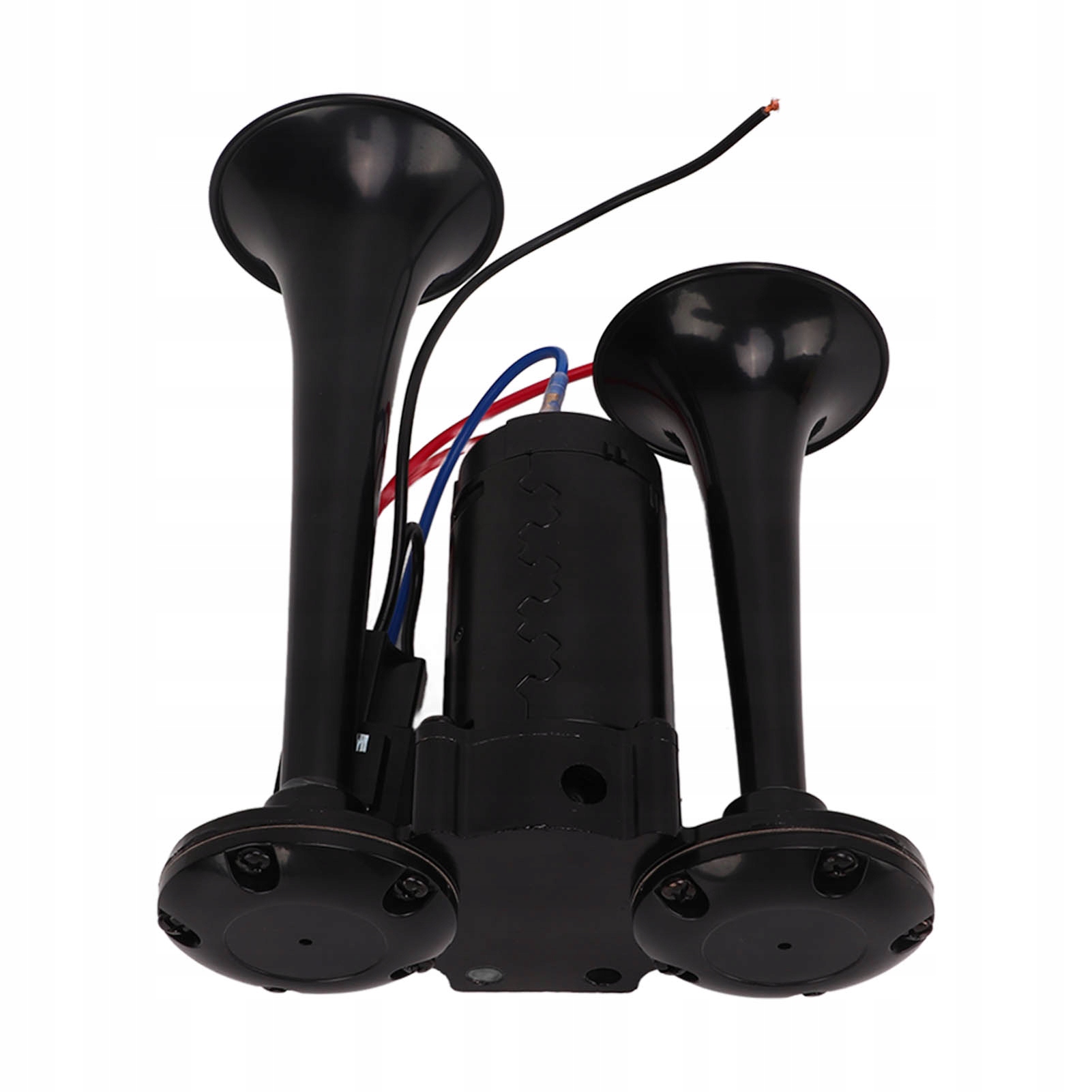 Подвійний повітряний звуковий сигнал 130 дБ DC 12 В Електричний повітряний звуковий сигнал із компресором для вантажівок Потягів Комерційних транспортних засобів Яхт Коралів Метал (чорний)