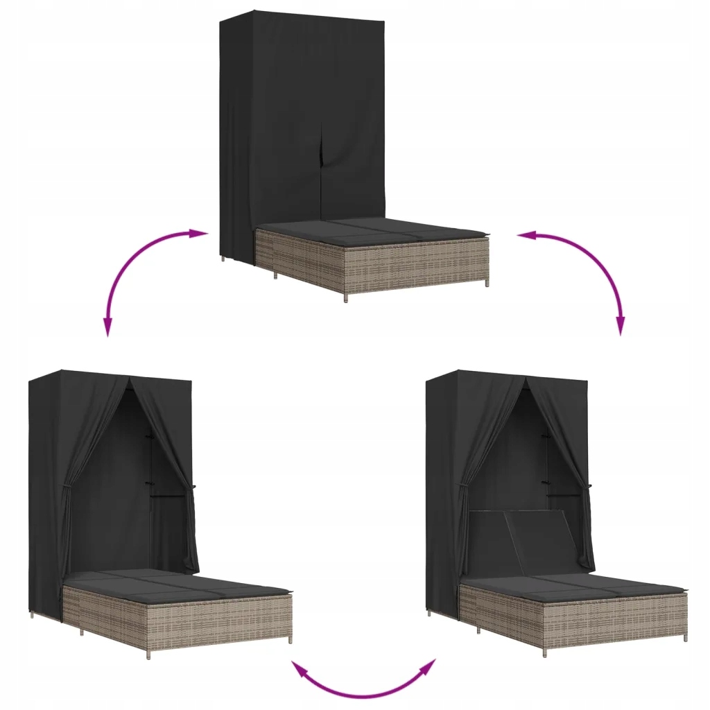 Подвійний ротанний шезлонг із навісом, сірим, 104x197x193 см