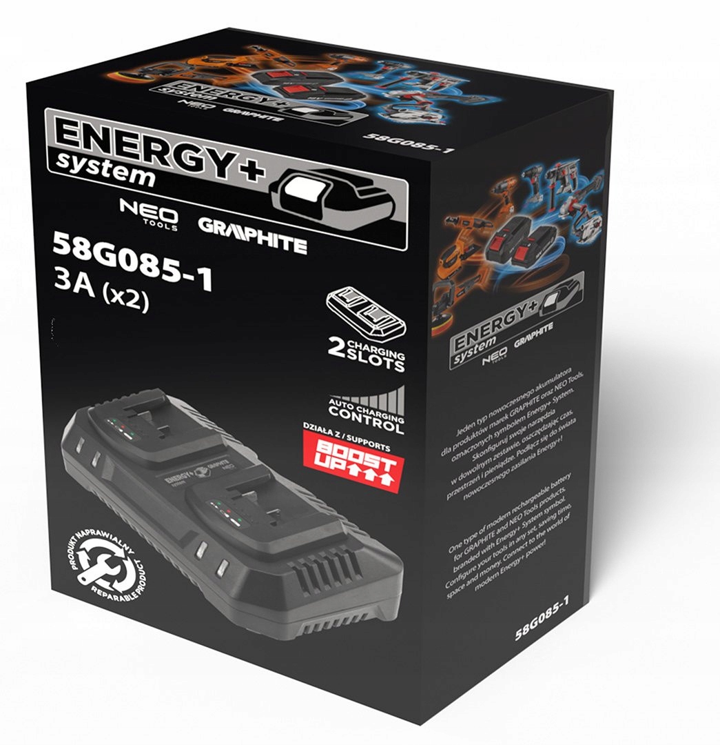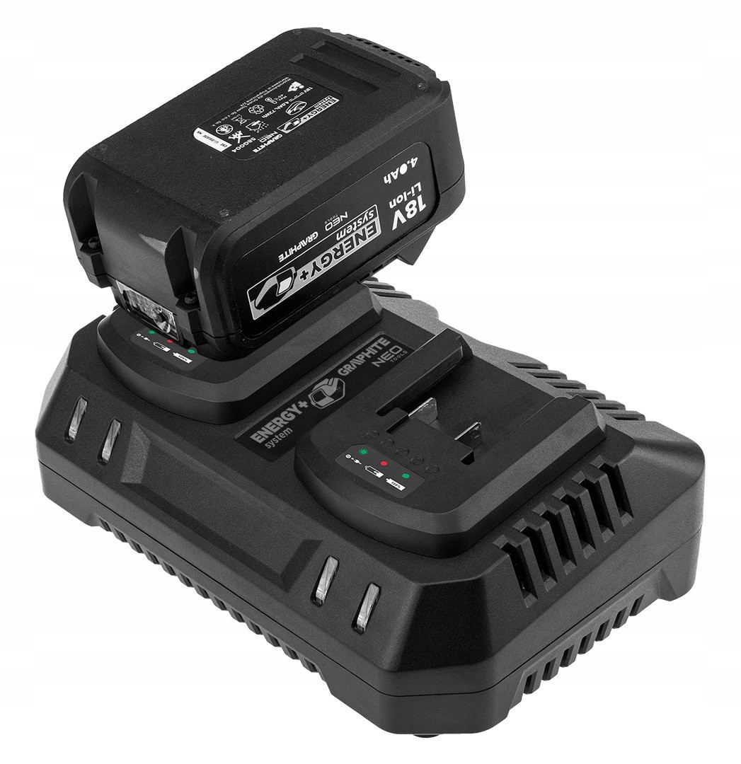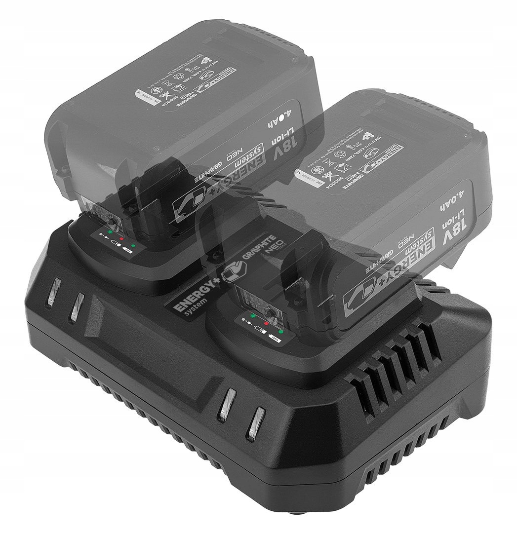 Ефективний подвійний зарядний пристрій для літій-іонних акумуляторів 18 В із серії Energy+ від GRAPHITE – ідеальний для ентузіастів і професіоналів, які займаються своїми руками.