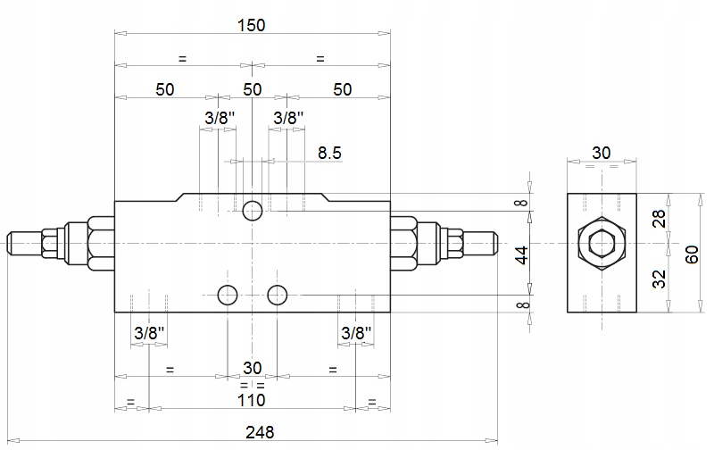 ПОДВІЙНИЙ ВЕРХЦЕНТРНИЙ ГІДРАВЛІЧНИЙ КЛАПАН VBCD 3/8" DE-A 40л/хв. 350бар