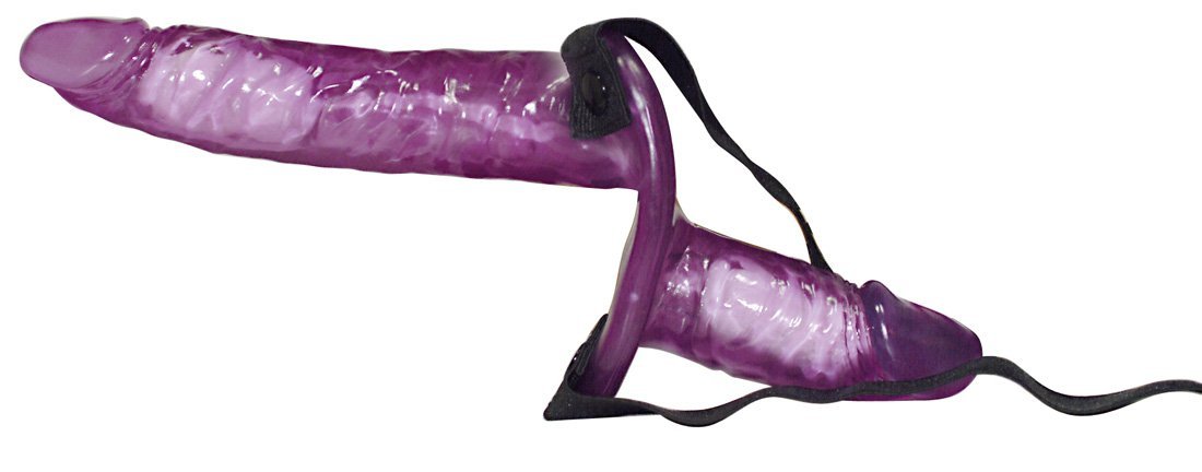 Подвійний протез пеніса зі страпоном, виготовлений із фіолетового, приємного до шкіри та м’якого желеподібного матеріалу.