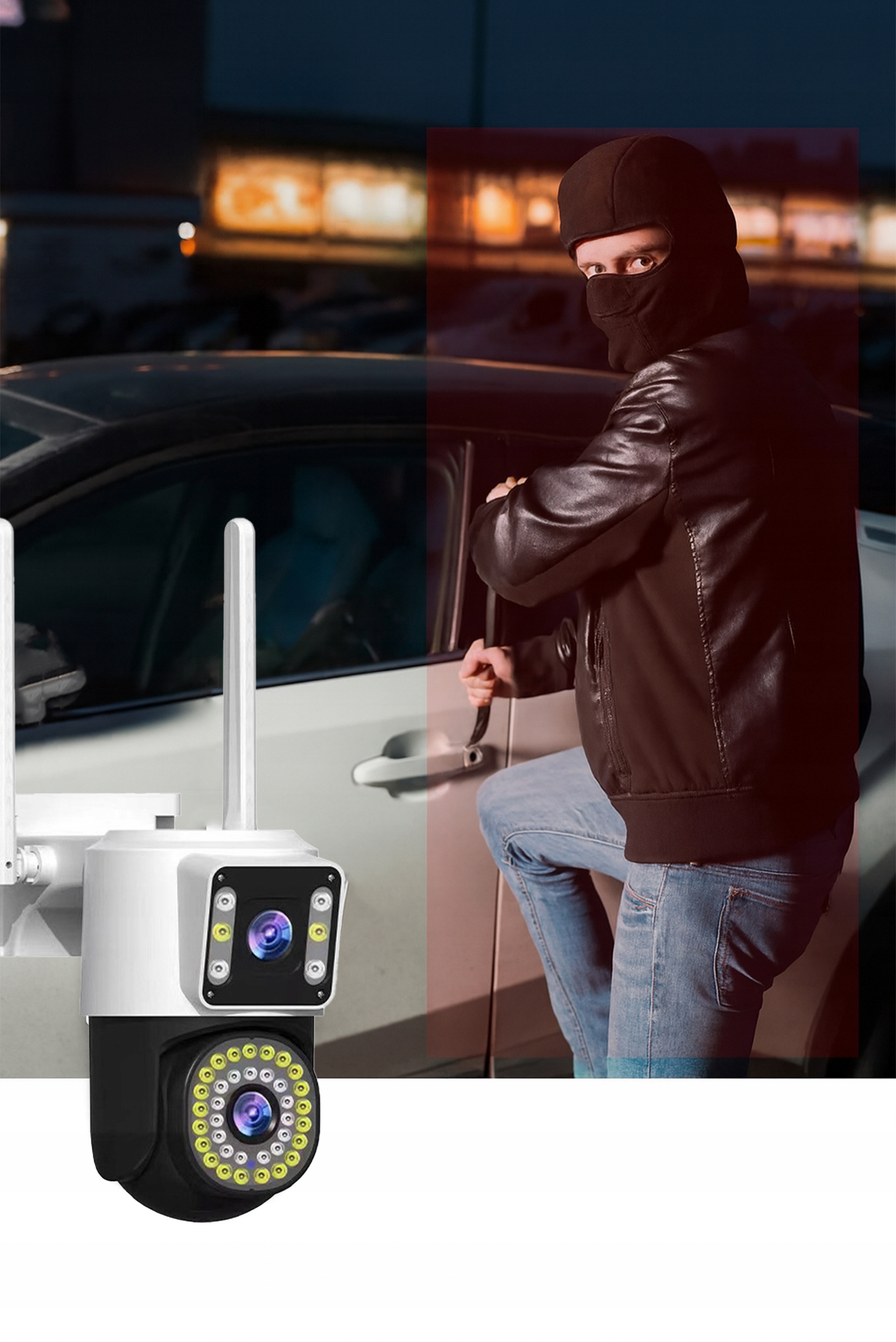 Два лінзи дозволяють одночасно контролювати більшу площу. Завдяки цьому ви усуваєте "мертві зони" та отримуєте повний контроль. Це рішення, яке змушує одну камеру замінювати два традиційні.