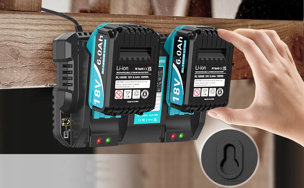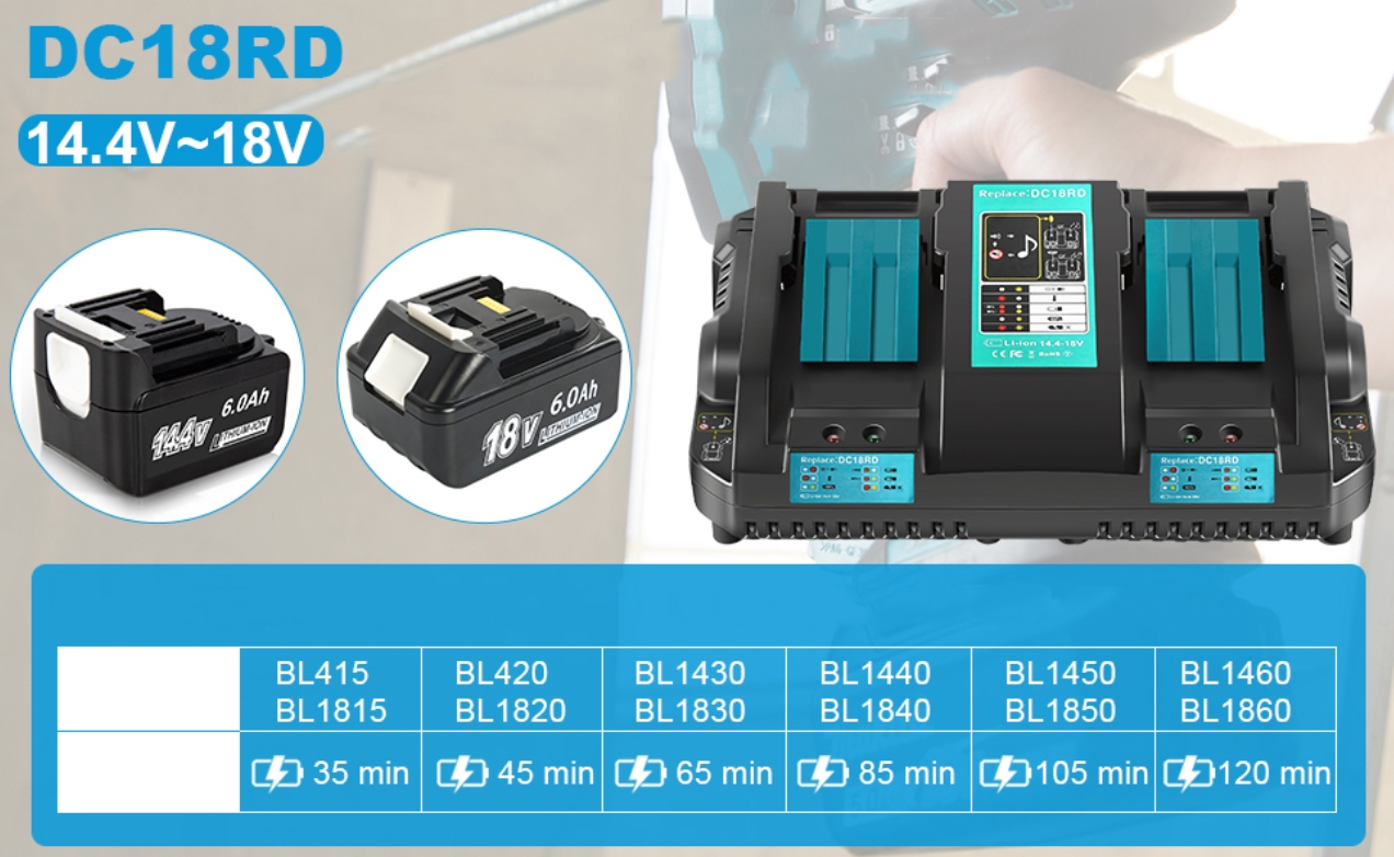 Подвійний зарядний пристрій для акумуляторів для Makita DC18rd + 2 акумулятор 18V 6AH