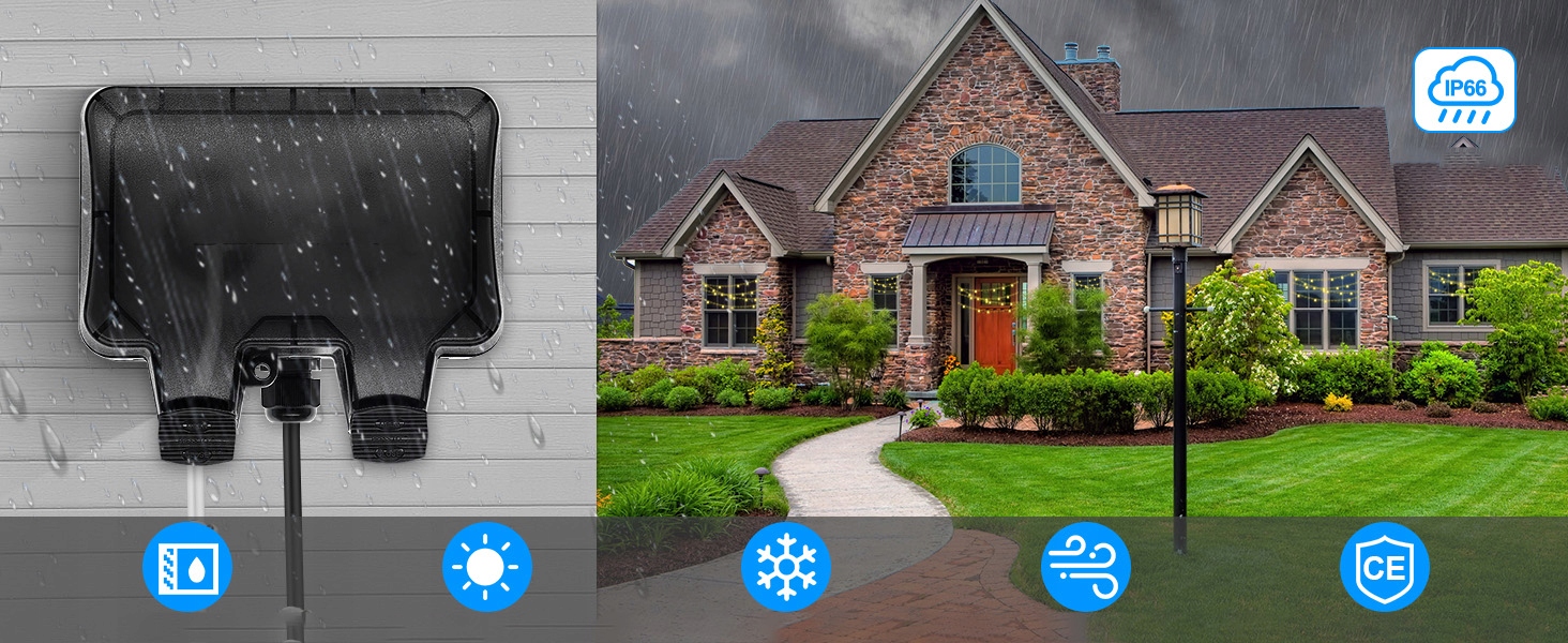 - Завдяки рейтингу IP66, він повністю водонепроникний і пилонепроникний, ви можете використовувати його в приміщеннях з високою вологістю або захищених вуличних приміщеннях.