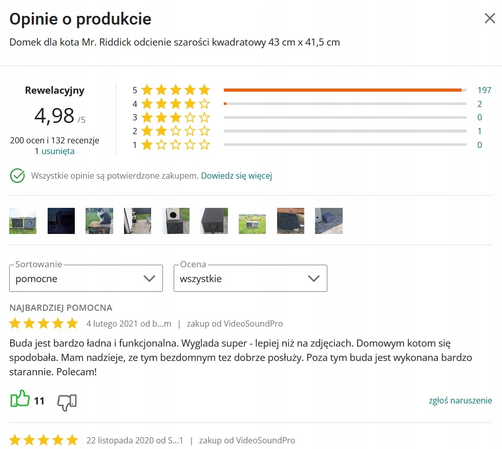 Цей кабінка має оцінки показані далі (станом на 6 березня 2024 р.) – на жаль, Allegro містить їх лише для перших п’яти колірних варіантів, а кабінки відрізняються від один одного лише за кольором або малюнком оббивної тканини - якщо хочете почитати відгуки, введіть у пошуковій системі Allegro: