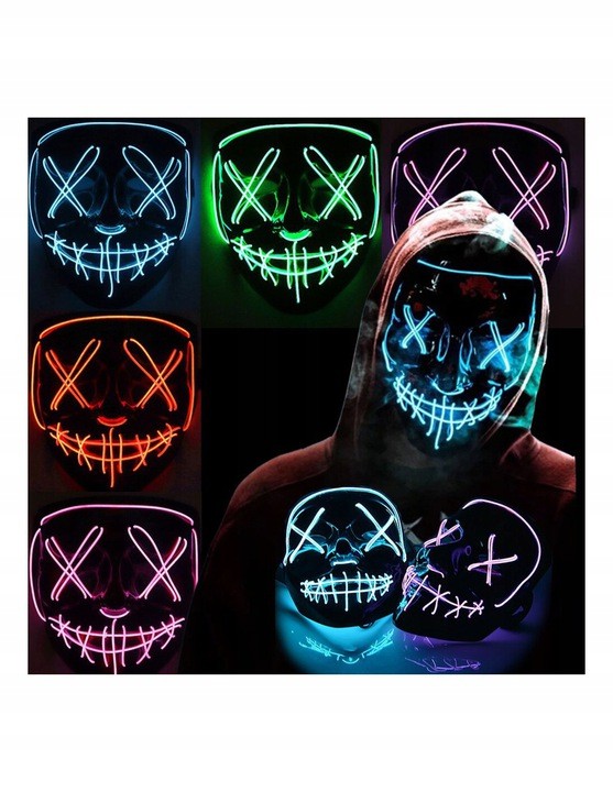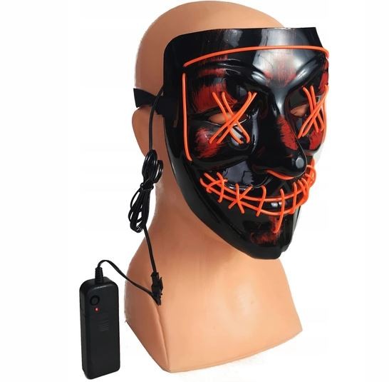 PODŚWIETLANA MASKA NA HALLOWEEN LED IMPREZA ŚWIECI