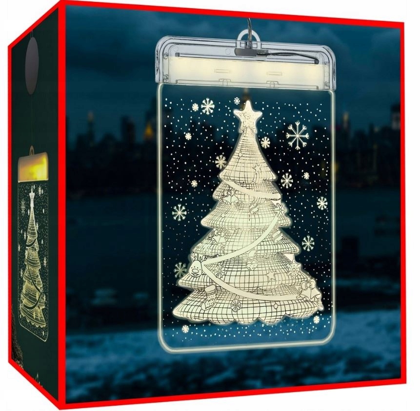 PODŚWIETLANY WISZĄCY WITRAŻ LED LAMPKI ŚWIĄTECZNE DEKORACJA ŚWIECĄCA OKNA