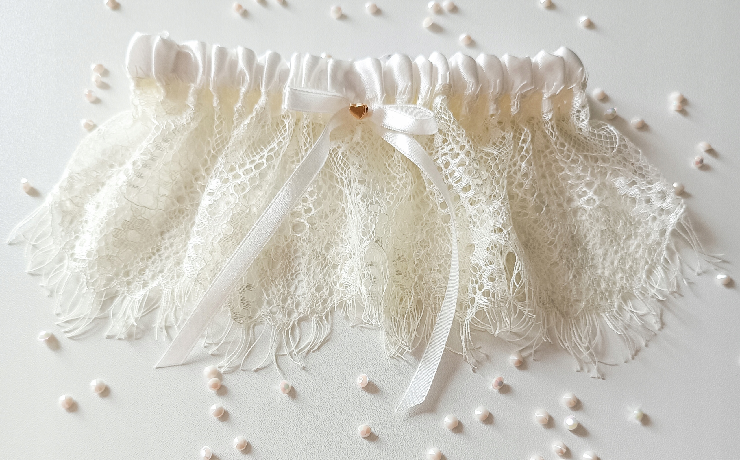 Podwiązka ślubna Eliza ivory kremowa boho koronkowa serduszko NA WYMIAR