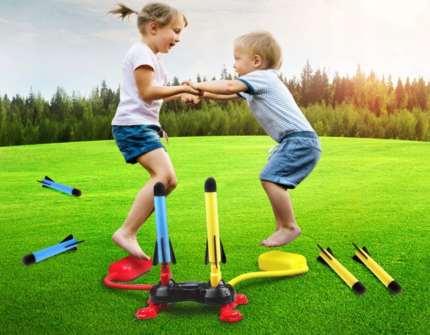 Чудова іграшка для гри в саду, яка порадує не тільки дітей. Управління пусковою установкою просте, кожен може впоратися з нею без будь-яких проблем - просто наступіть на гнучкий повітряний резервуар, щоб запустити ракету.