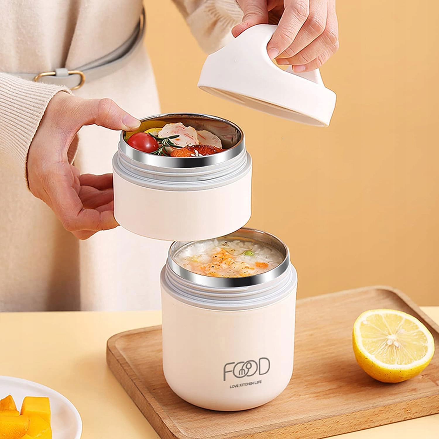 PODWÓJNY POJEMNIK TERMOS KUBEK 680 ML NAŻYWNOŚĆ JEDZENIE ZUPĘ
