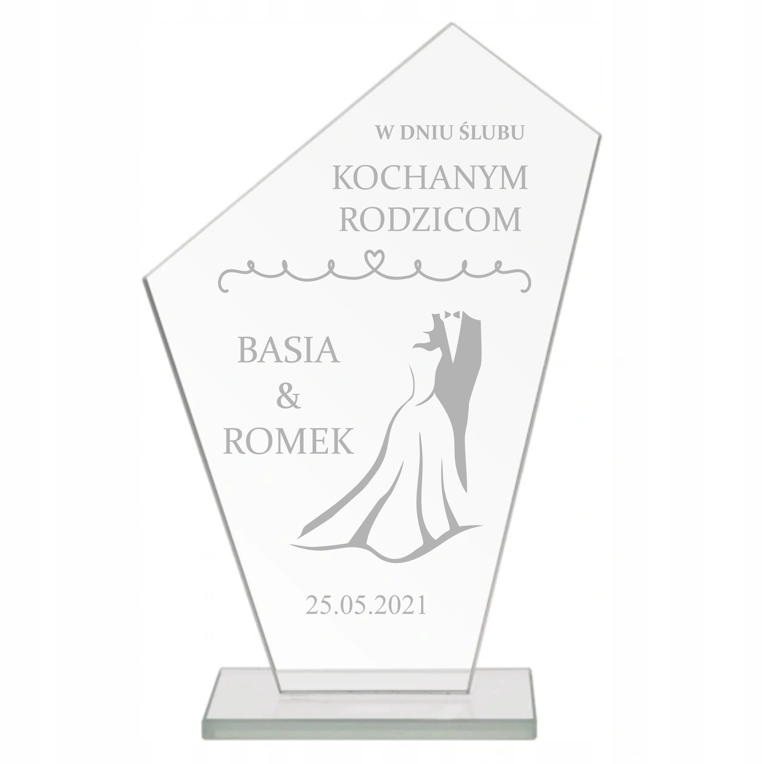 Подаруйте їм елегантну скляну статуетку ДЯКУЄМО БАТЬКАМ із персоналізованим текстом!