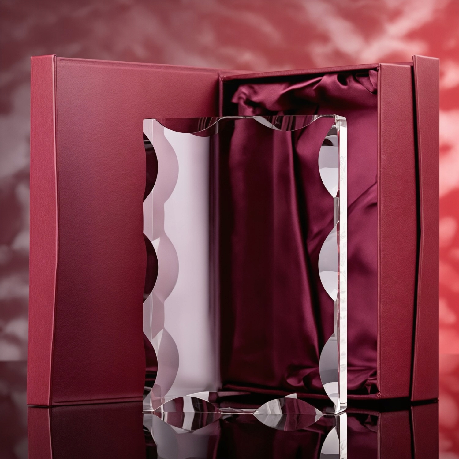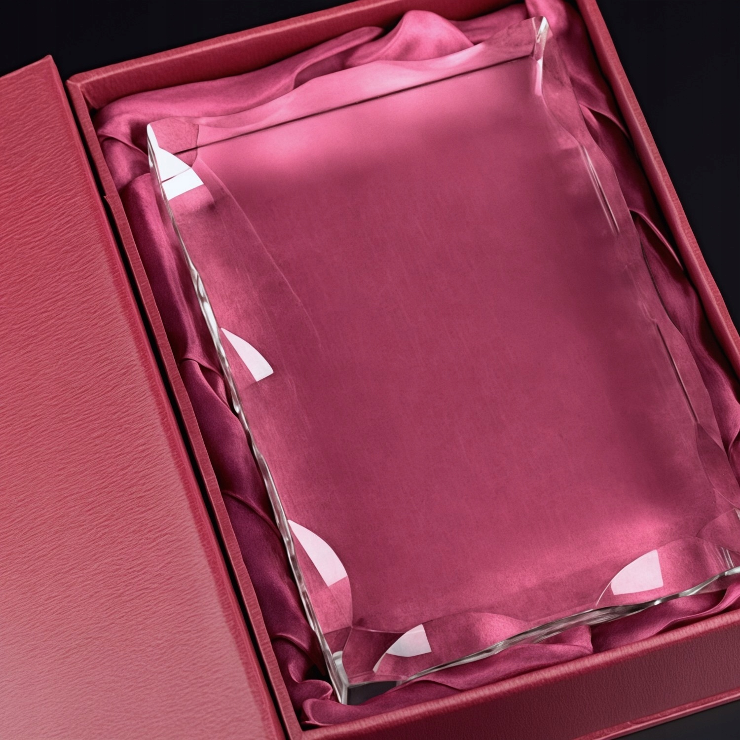• високої якості декоративна упаковка з бордовим атласом і вигравіруваною присвятою