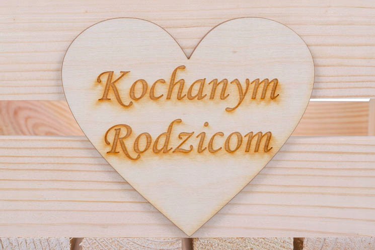 На лицьовій стороні коробки є вигравіруване сердечко кольору натурального дерева, на якому ви можете розмістити будь-який напис, наприклад, Шановні батьки, Шановні куми, Шановна бабуся, тощо.