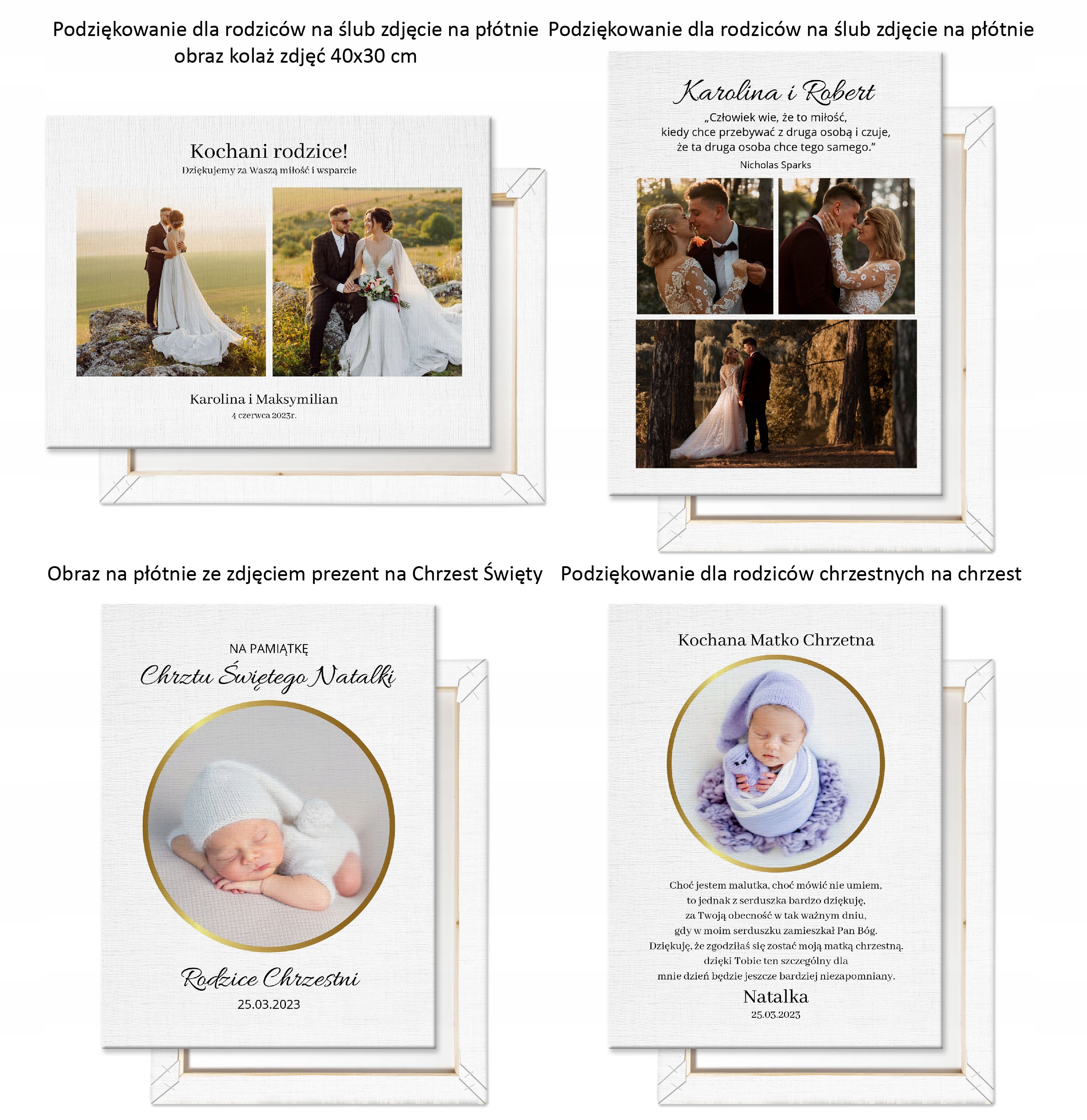 Картина на полотні з фото з власною присвятою в подяку батькам свідків весілля 40х30