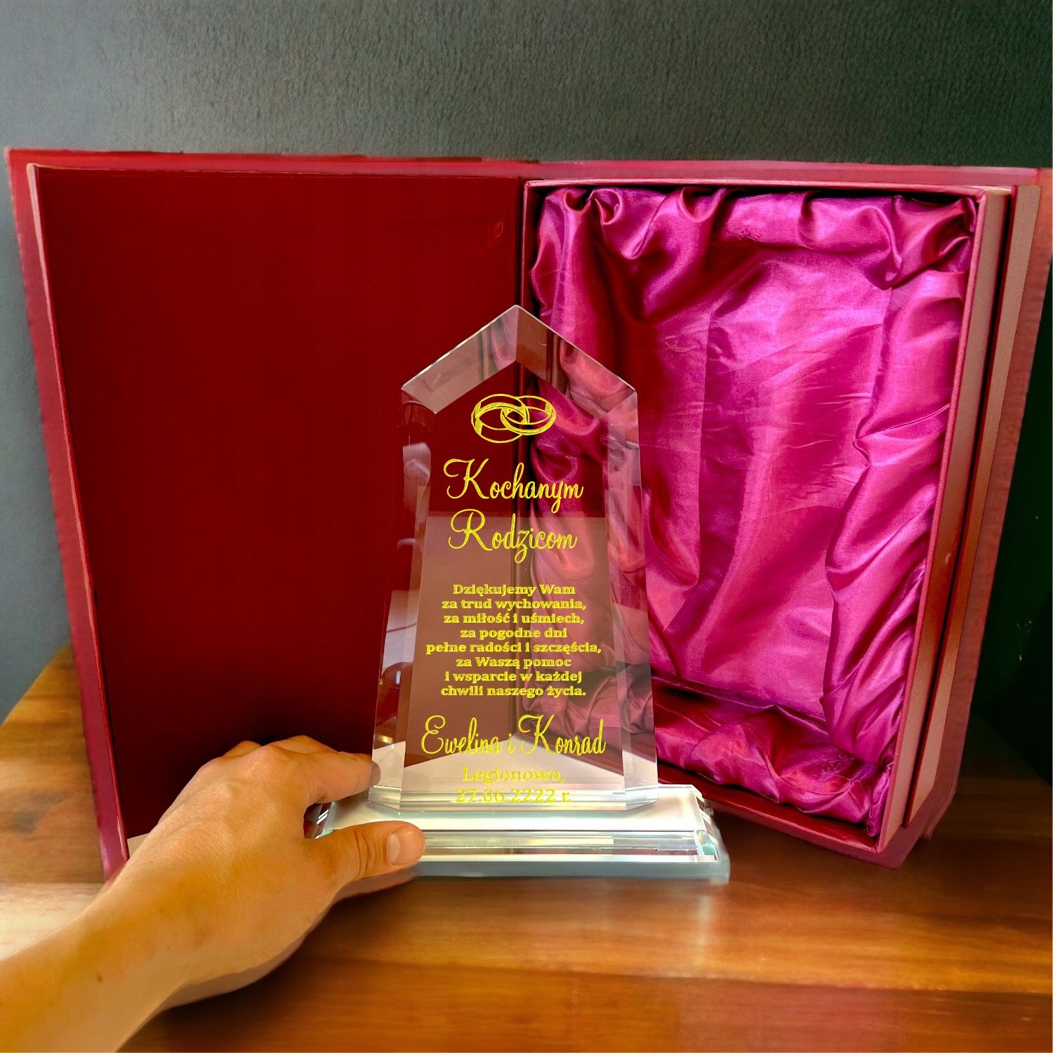 Красива подячна записка виготовлена за допомогою технології лазерного гравіювання безпосередньо на предметі. статуетка виглядає чудово завдяки інноваційній формі, а завдяки вирізам створює незабутнє естетичне враження. Встановлений на міцну основу з такого ж матеріалу, які міцно з'єднані між собою, він неодмінно запам'ятається одержувачу. Ви більше ніде не знайдете такої високої якості. Крім того, гравіювання наноситься майстром вручну і дуже акуратно спеціальною фарбою. Позолота/срібло переливається на світлі та дає дивовижний ефект. До всього доповнює красивий бордовий чохол з бордовим атласом в якому статуетка виглядає ще красивіше, а позолота виділяється на тлі чохла. Можу зробити для вас - ПОДАРУНОК НА БУДЬ-ЯКИЙ НАВОД (весілля, гостини, хрещення, причастя, день народження, вісімнадцяти іменини, ювілей, річниця весілля, день матері та батька, день дідуся та бабусі, день Святого Валентина, день вчителя, тощо). b>