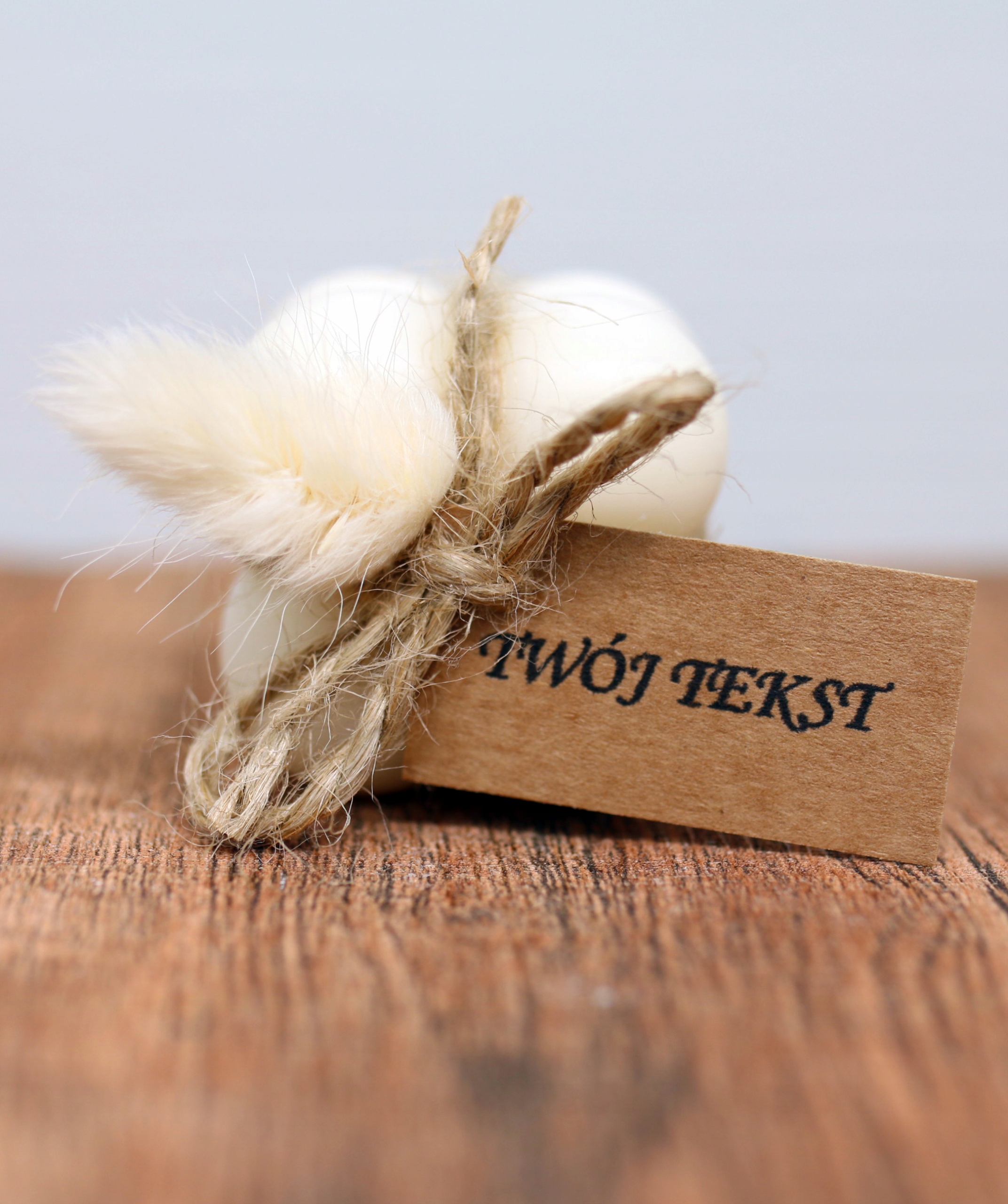 Декоративна соєва свічка "Mini Bubble", біла, упакована в шнурок і крафтову етикетку.