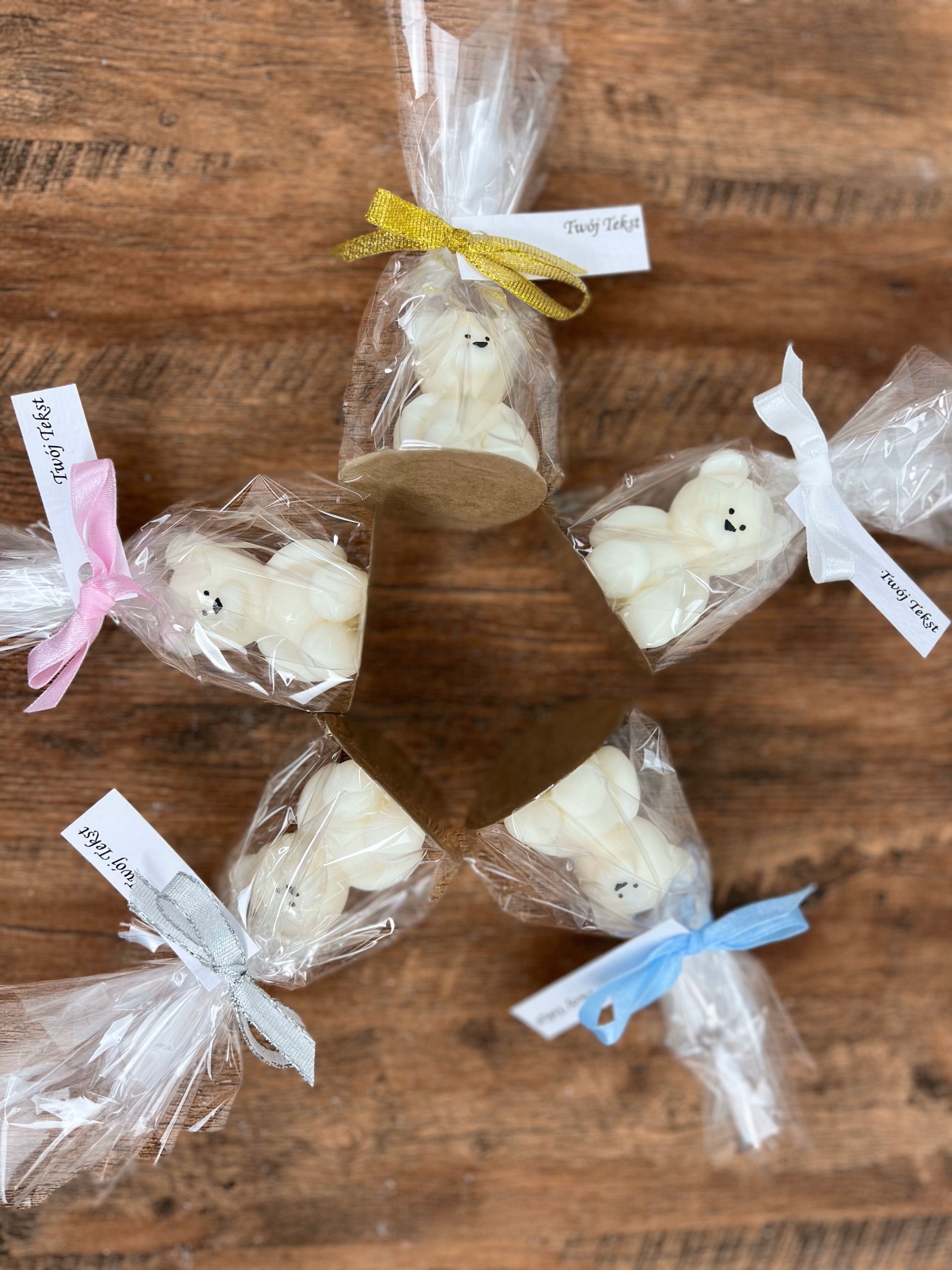 Подяка гостям - весілля, хрестини - соєва свічка, білий ведмедик - МХМ