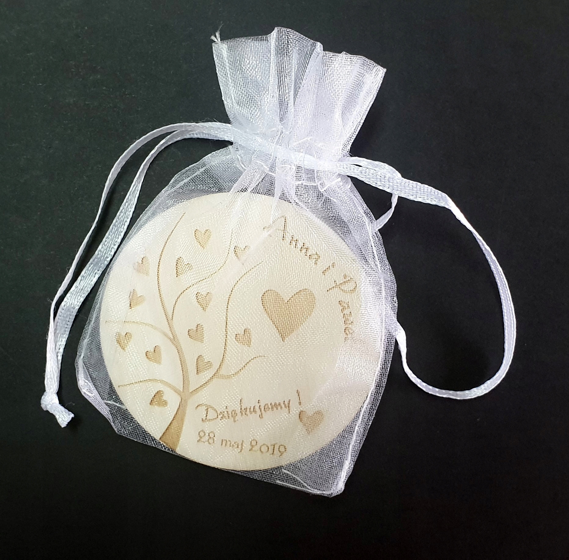 Пропонуємо елегантні подячні листочки для гостей весілля та хрещення у вигляді дерев'яних магнітів на холодильник.