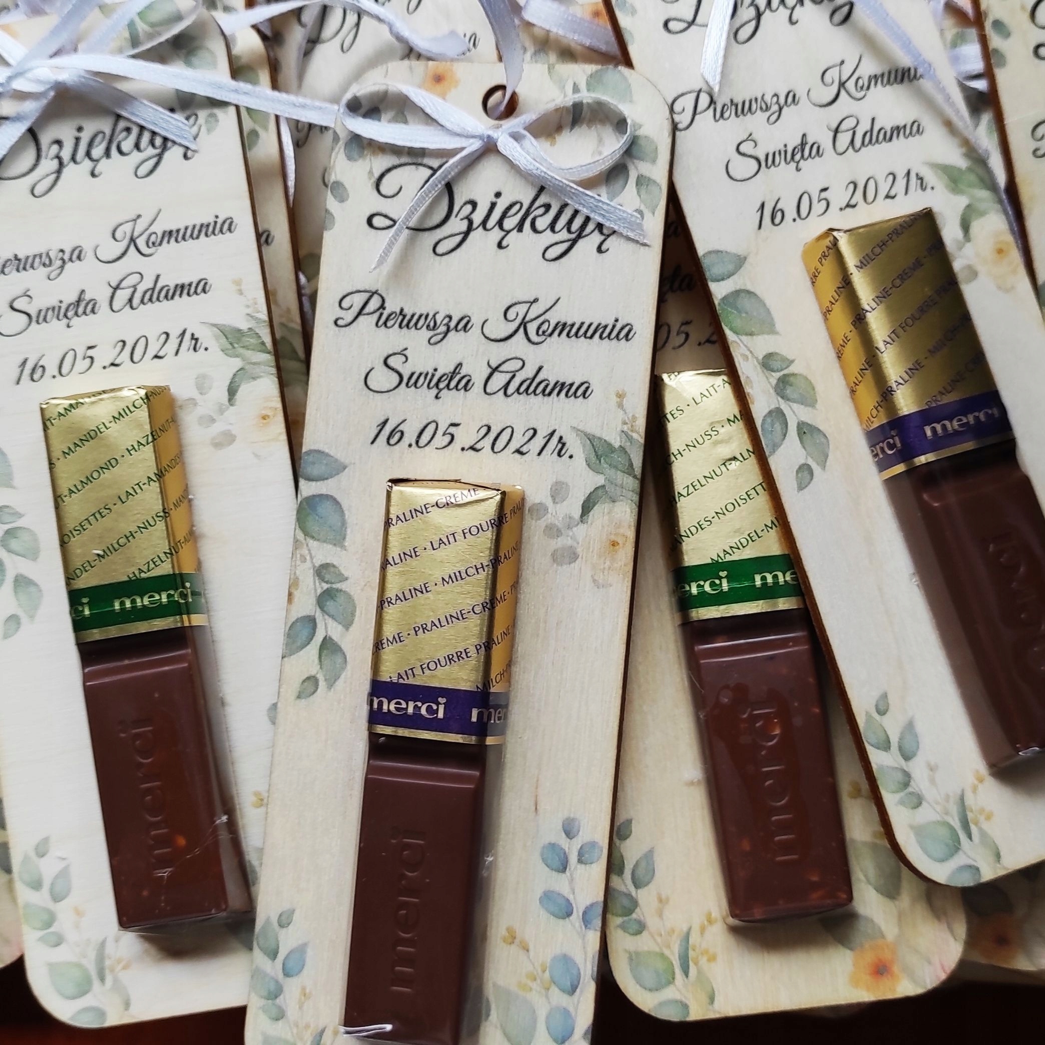 Подяка Merci Шоколадна закладка дерев’яна УФ-друк подарунок Причастя