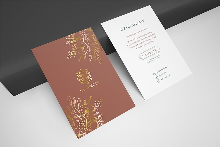 Ексклюзивна подяка за вашу покупку з вашим власним логотипом, покритим оксамитовою м’якою фольгою з додатковим позолотою за допомогою обраної фольги. Ви можете вибрати золоту, срібну, рожеве золото, мідну, червону, синю фольгу.