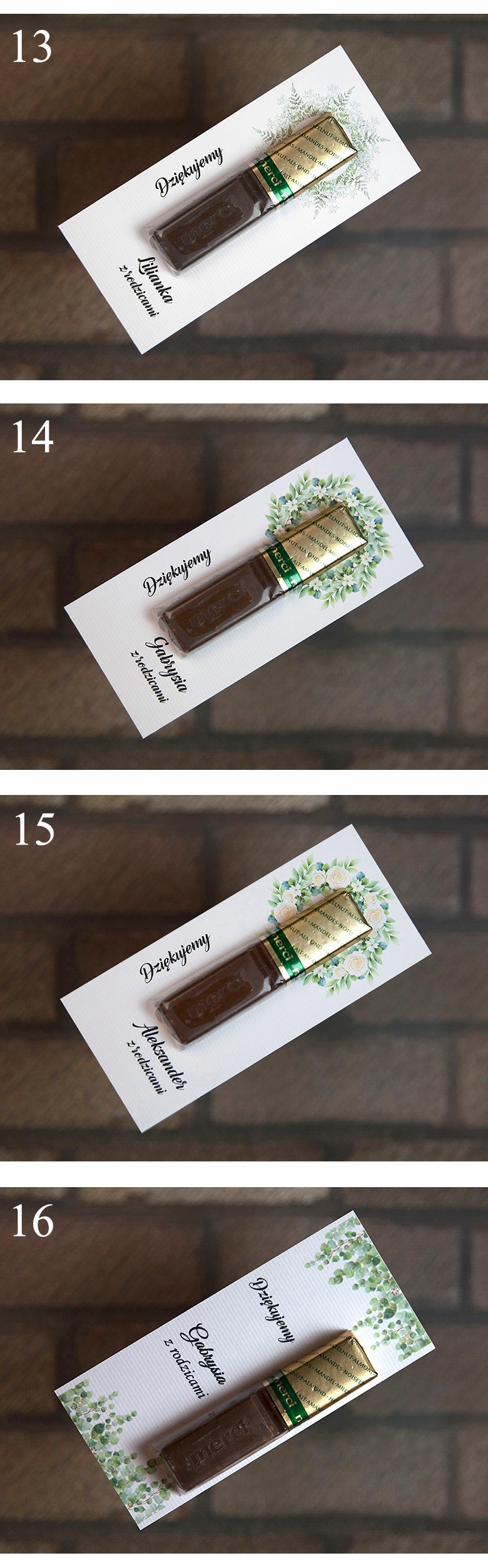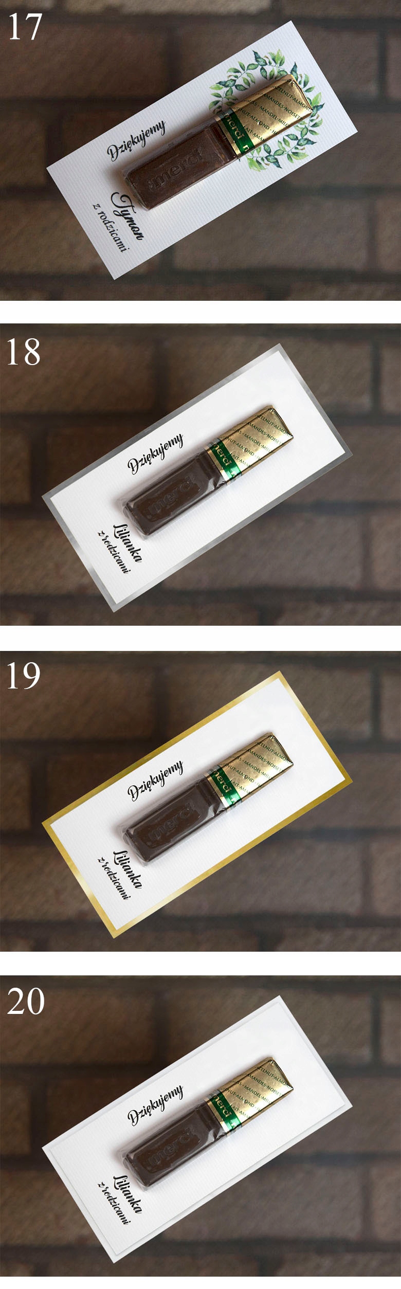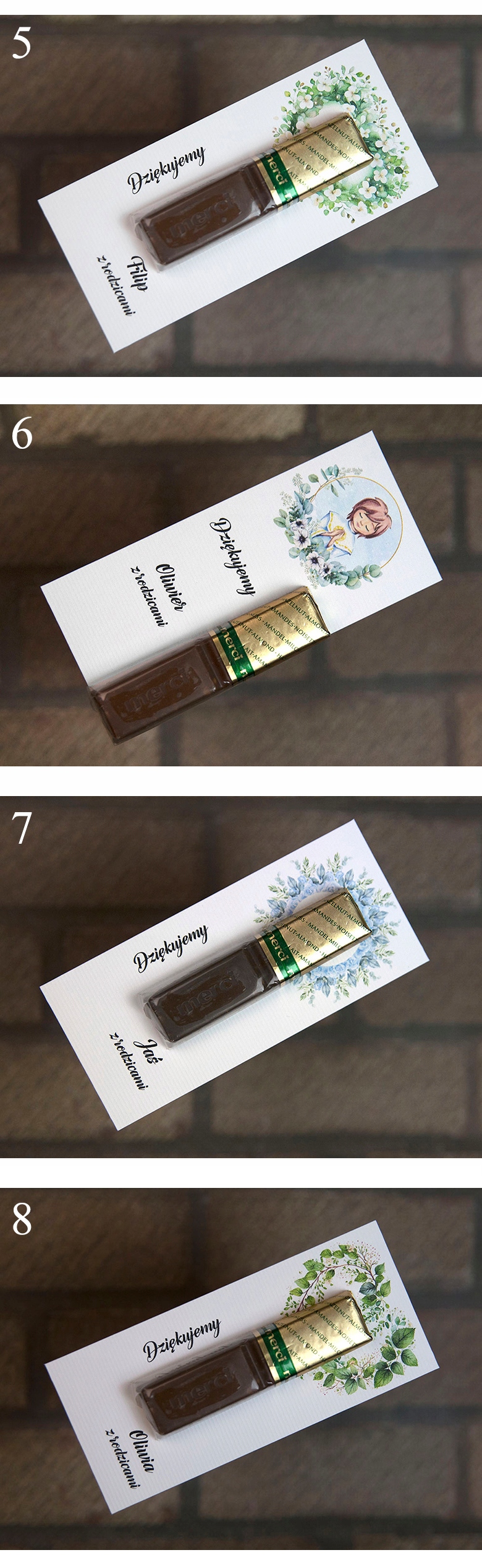 Просматривая «Подяки на Перше Причастя для гостей ГОТОВІ до столу ДЛЯ ЗАПРОШЕНЬ 17 ДИЗАЙНІВ», вы можете быть уверены, что данный товар из каталога «Спасибо» будет доставлен из Польши и проверен на целостность. В цене товара, указанной на сайте, учтена доставка из Польши. Внимание!!! Товары для Евросоюза, согласно законодательству стран Евросоюза, могут отличаться упаковкой или наполнением.