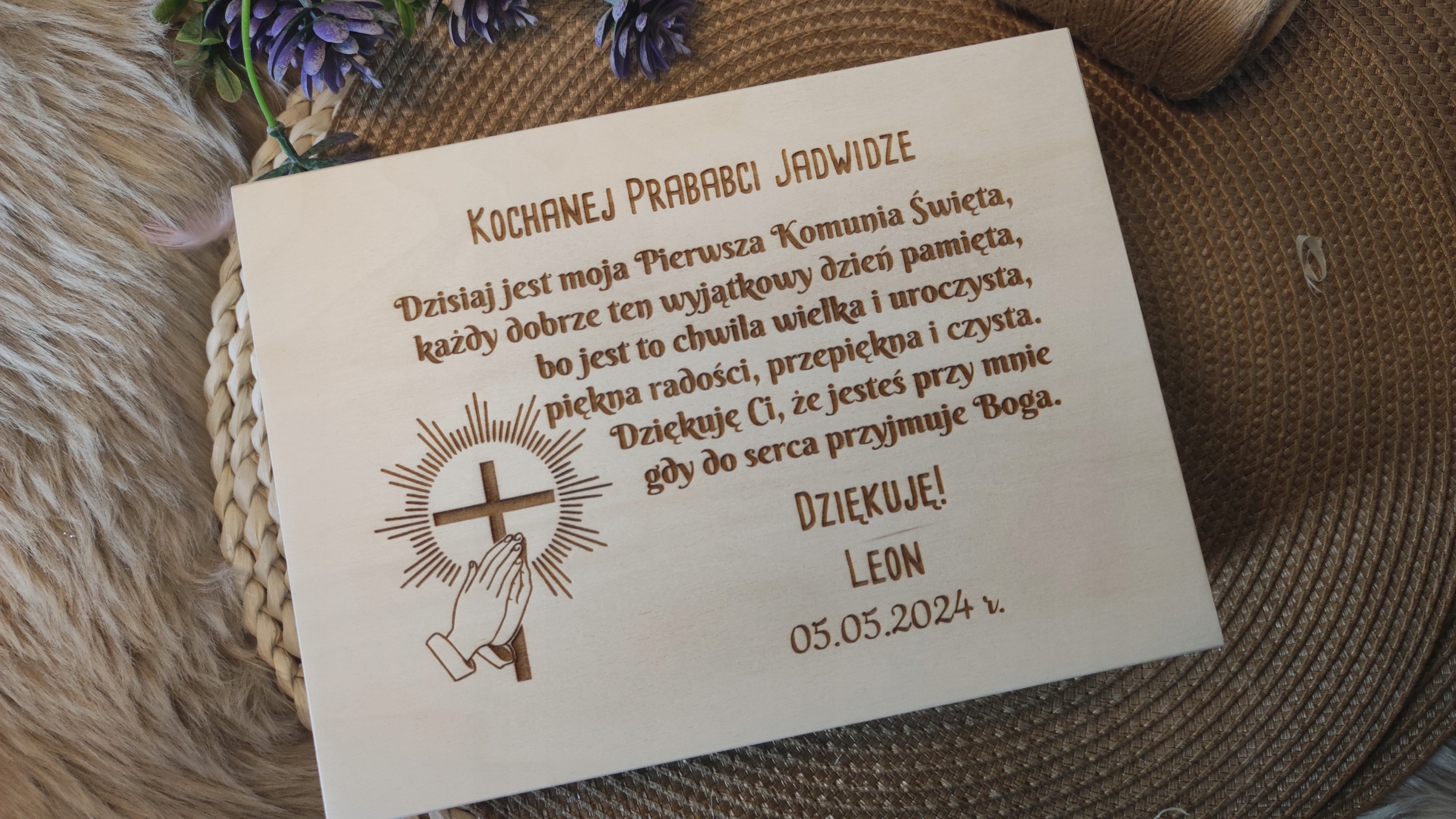 Дерев'яна скринька для бабусі з унікальною подякою з нагоди Першого Причастя. Персоналізовані скрині - це оригінальний подарунок, який буде сувеніром на довгі роки.