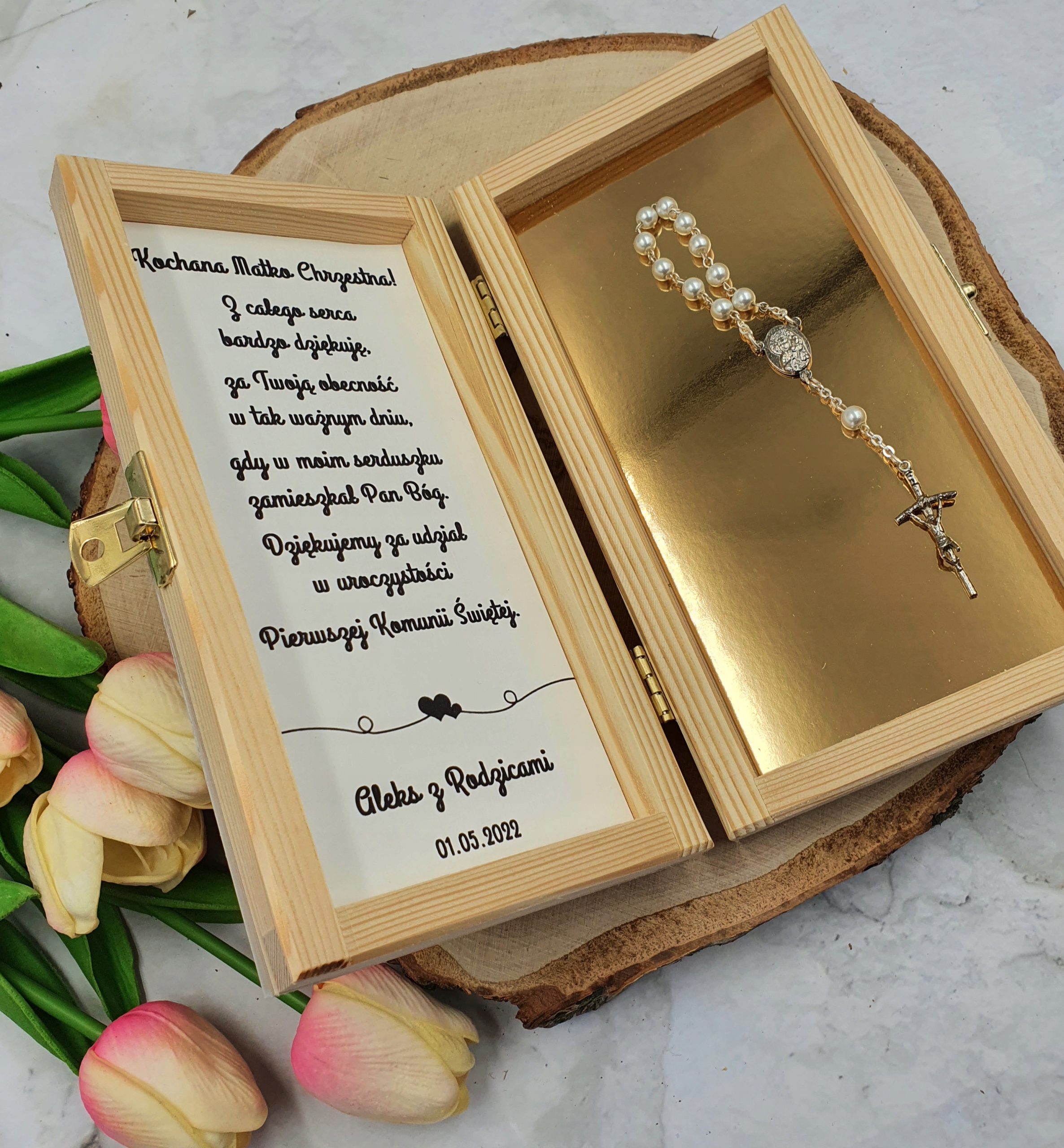 Даруємо дерев’яну скриньку в знак подяки хрещеній мамі, куму і бабусі, дідусеві, гостям.