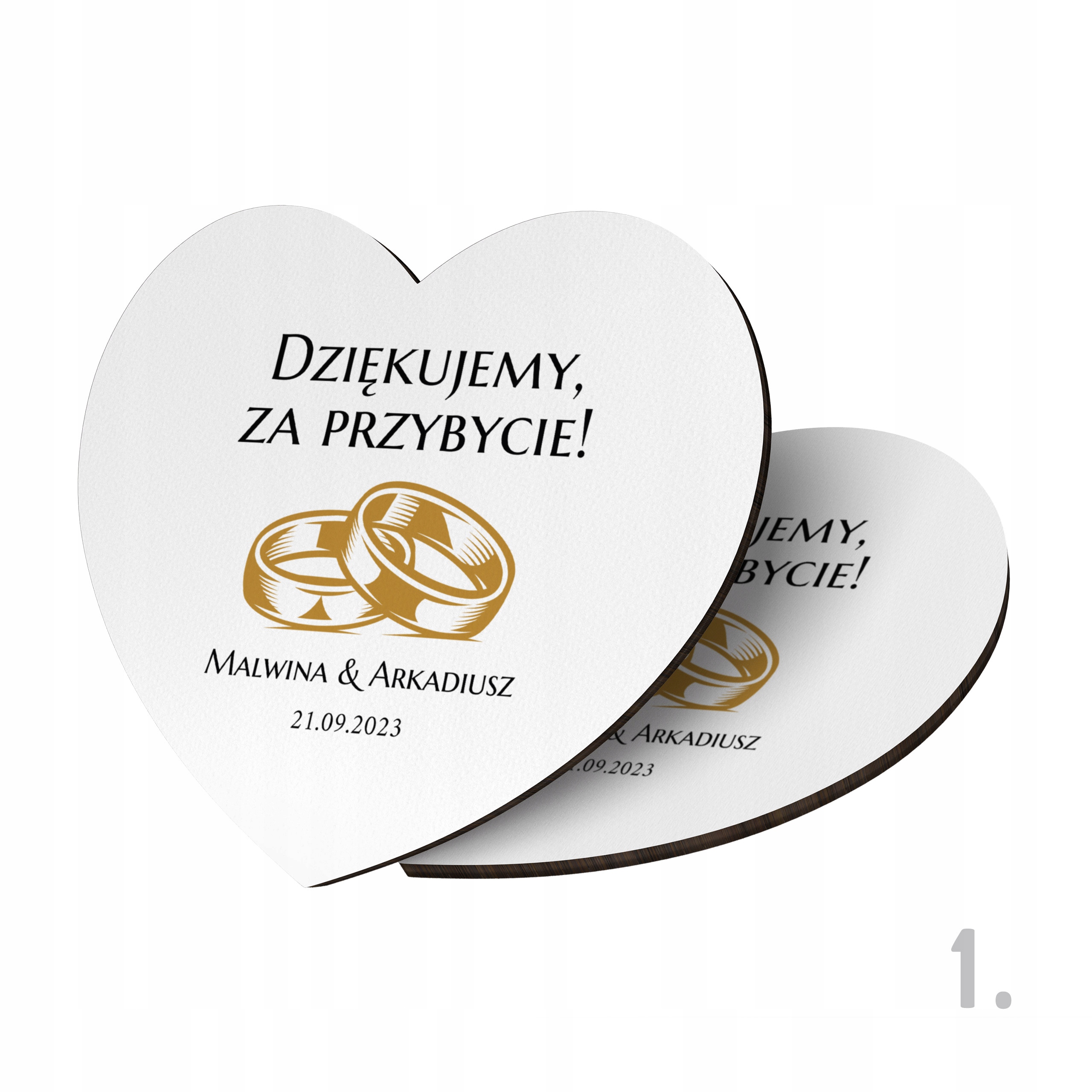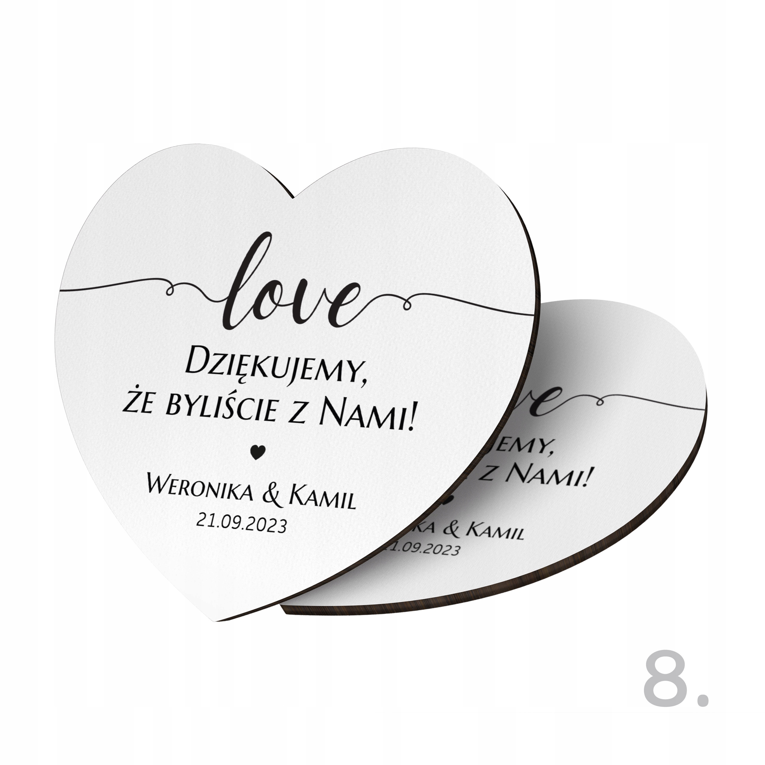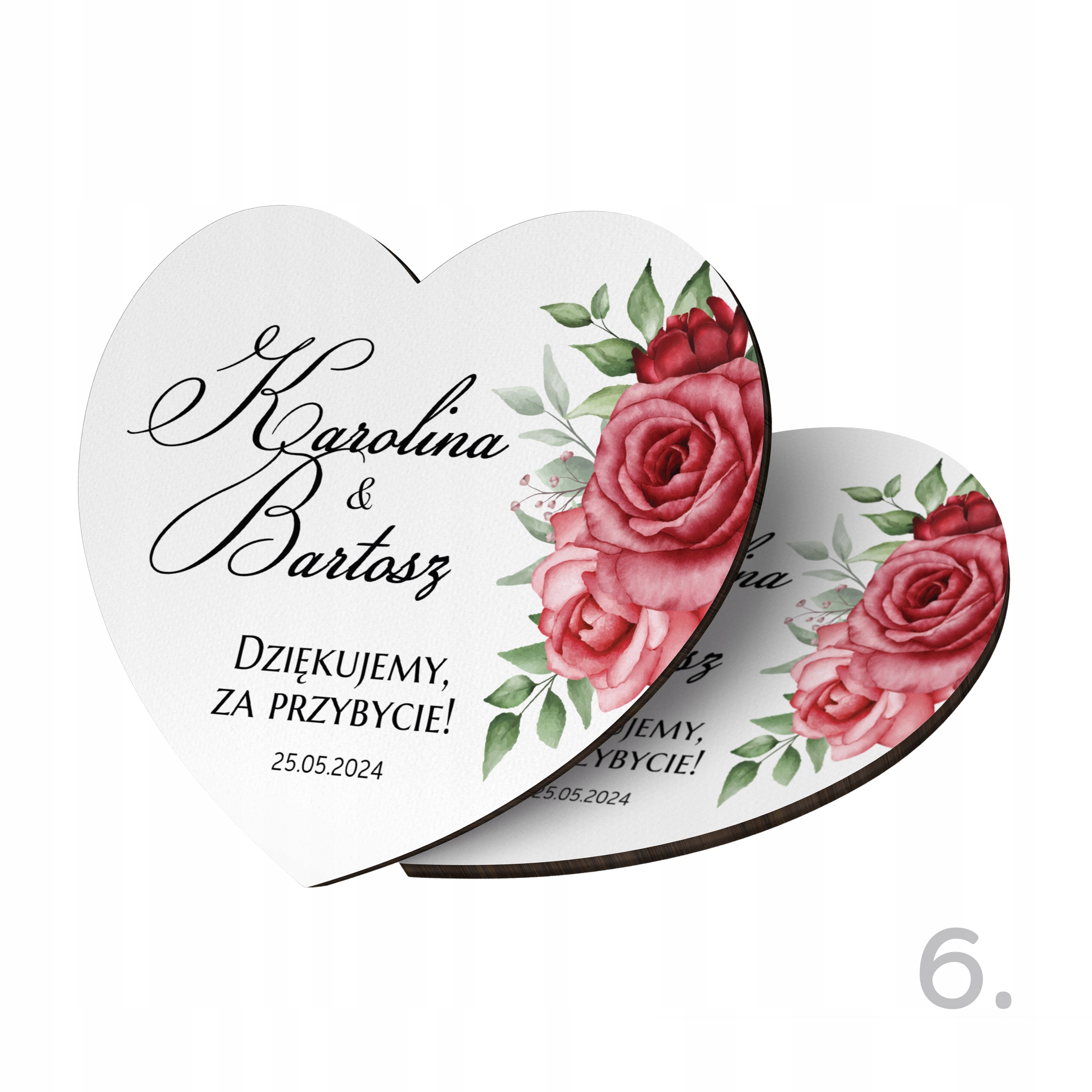 Наш персоналізований магніт у формі серця - унікальний сувенірний подарунок, який зробить день весілля ще більш незабутнім для всіх гостей. Завдяки використанню сучасного друку, що гарантує гарні кольори, класичний формат магніту перетворюється на унікальну та персоналізовану версію, яка служитиме багато років, даруючи приємні спогади. Кожен магніт ретельно оброблений і проходить суворий контроль якості перед упаковкою - ми віримо, що перше враження є найважливішим.