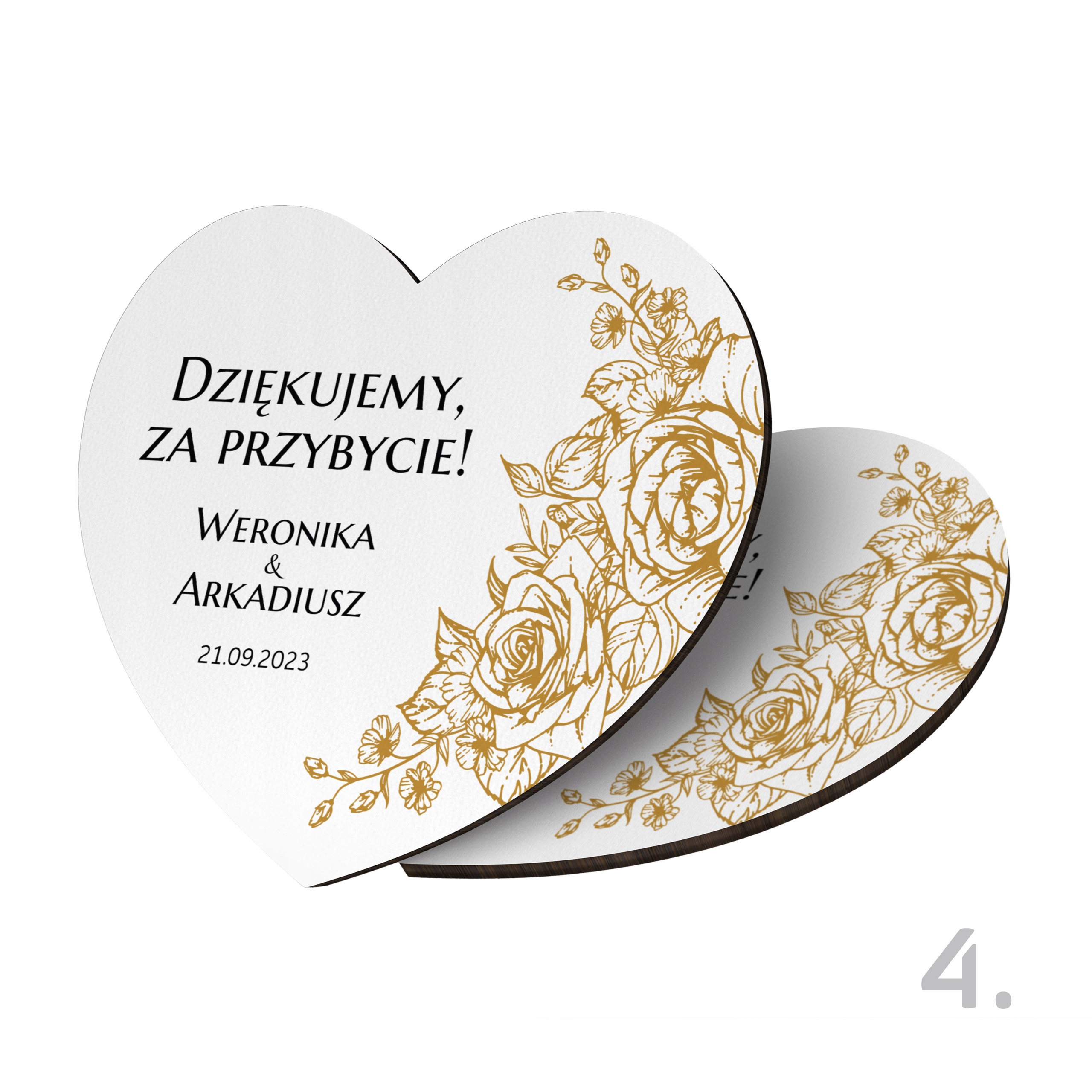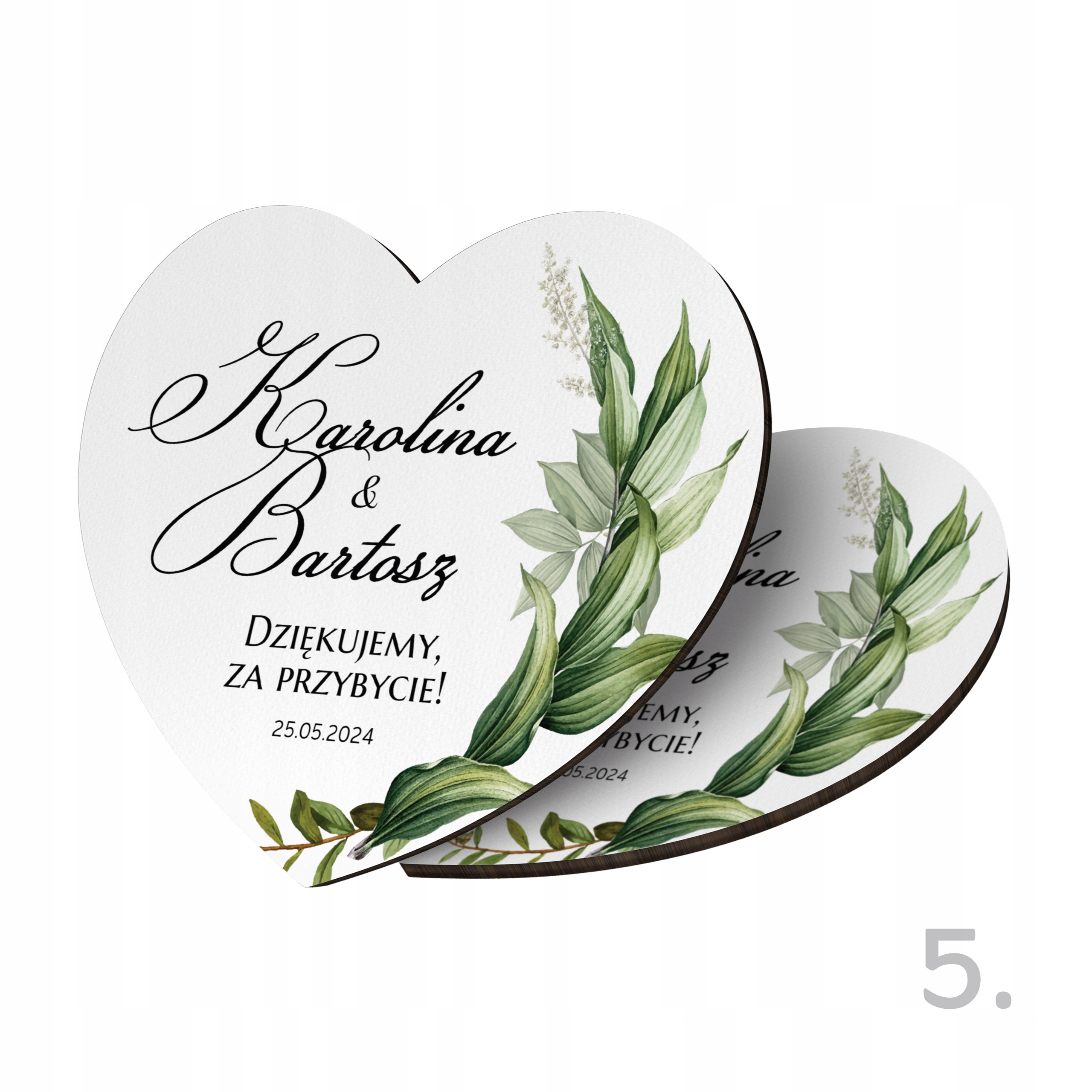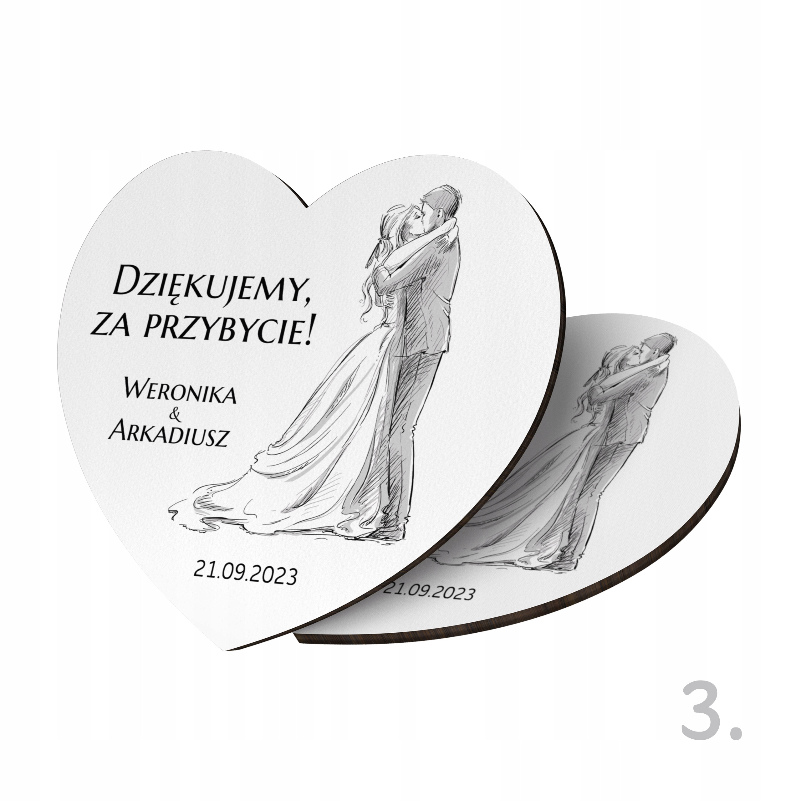 Наш персоналізований магніт у формі серця - унікальний сувенірний подарунок, який зробить день весілля ще більш незабутнім для всіх гостей. Завдяки використанню сучасного друку, що гарантує гарні кольори, класичний формат магніту перетворюється на унікальну та персоналізовану версію, яка служитиме багато років, даруючи приємні спогади. Кожен магніт ретельно оброблений і проходить суворий контроль якості перед упаковкою - ми віримо, що перше враження є найважливішим.
