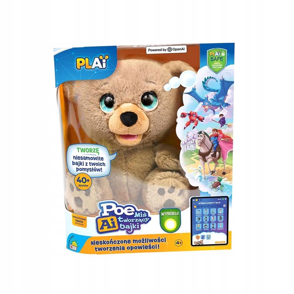 Плюшевий ведмедик POE - ваш особистий творець казок із ШІ! Програмне забезпечення зі штучним інтелектом з’являється всюди – і тепер воно є навіть у плюшевих ведмедиках! Завдяки плюшевому ведмедику POE кожна історія, яку почує ваша дитина, буде унікальною та адаптованою до її смаку. Ви вибираєте, POE Bear створює! Хочете, щоб ваша дитина слухала історії, які вона сама створює? Вибирайте героїв, обстановку і навіть настрій – смішна чи страшна історія? А може, ви залишите все POE Bear, який сам все придумає завдяки ШІ? Нескінченні можливості! Жодна історія не схожа! Особливості POE Teddy Bear: - Генератор історій зі штучним інтелектом: POE використовує штучний інтелект для створення захоплюючих історій на основі обраних вами елементів - місць, персонажів, подій і навіть реальних фактів. - Багатомовність: Плюшевий ведмедик POE може говорити та створювати історії будь-якою мовою. - Реалістичне оповідання: плюшевий ведмедик рухає ротом, ніби він насправді говорить! - Режим офлайн: за допомогою вбудованої пам’яті ви можете зберігати до 60 хвилин своїх улюблених історій і слухати їх без програми. 3 режими гри: 1. Створіть історію: виберіть елементи історії та дозвольте POE створити унікальну казку. 2. Подальші дії: перезапустіть історію, яку ви вже чули. 3. Потокове передавання: слухайте мультфільми з Інтернету через свій мобільний телефон або планшет. Безпека та конфіденційність: ведмедик POE Teddy Bear повністю безпечний - він має вбудовані тематичні обмеження, не збирає дані, не використовує мікрофон і камеру. Відсутність можливостей запису та зв'язку забезпечує повну безпеку. Завантажуйте програму та створюйте мультфільми з POE: - Google Play - Apple Store Додаткова інформація: - Артикул: SR-18723 - Виробник: Skyrocket - Вікова група: 4+ - Живлення: 4 батарейки АА (входять в комплект). Примітка. Плюшевого ведмедика можна з’єднати лише з одним пристроєм одночасно. Щоб під’єднати його до іншого пристрою, обов’язково роз’єднайте його на попередньому пристрої. Подаруйте своїй дитині нескінченні пригоди та радість від творчості!